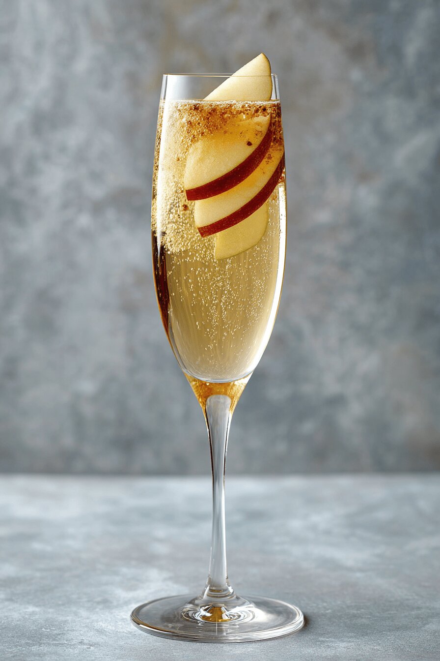 - 💡 Pouring tempo controls outcome. Start with chilled flute to keep bubbles trapped. Slowest pour vermouth first, no mixing. Then brandy, gently poured over spoon back for layering, avoids early homogenizing. Crushed ice signals chill; too much melt waters down too fast. Sparkling cider poured slowly along glass side; direct splash kills fizz immediately. Juice last, light pour builds milky color, adds silkiness, settles inside layers. Garnish apple slices slide in, edges curve against glass, don’t break surface tension. Drink quick, fizz and aroma fade soon after ice melts. No shake or muddle; clarity over cloudy flatness.