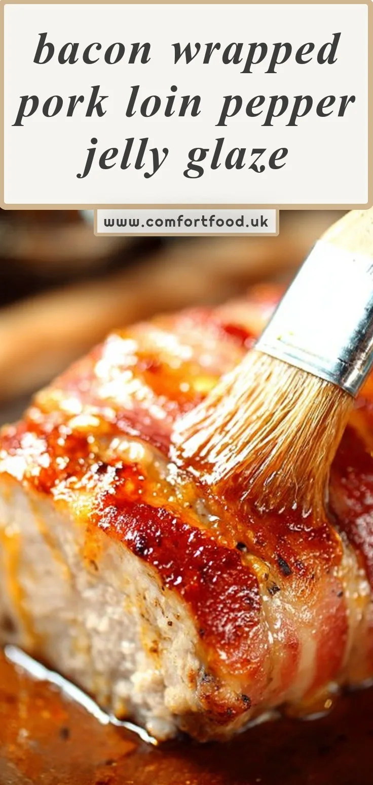 I made this bacon wrapped pork loin last Tuesday after work and honestly, it’s one of those recipes where the bacon does most of the talking. The pepper jelly glaze sounds weird until you taste it, then you get why vinegar belongs in there.