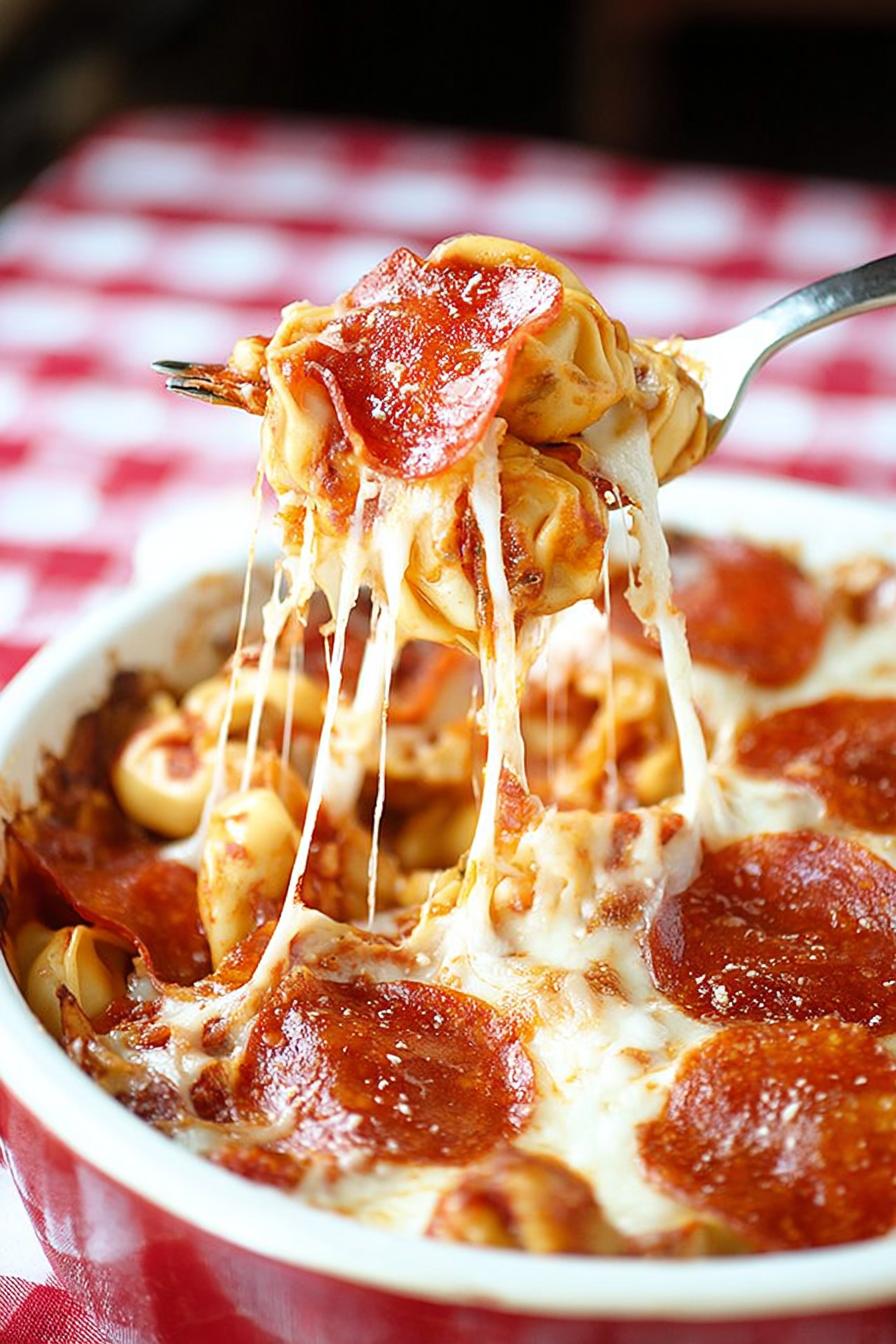 - Bake 22 to 28 minutes. Watch for bubbling sauce edges and cheese turning golden. Tortellini should feel tender yet springy when poked with fork. Smell a savory mix of sausage, garlic, melted cheese, toasted pepperoni aroma filling kitchen.