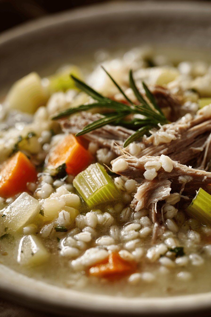 - 💡 Simmer broth with rosemary sprigs gently. No harsh rolling boil, just tiny bubbles teasing surface. Barley will cook 40-45 minutes, tender but toothsome. Turnips stay intact but soft enough. Stir once or twice tops. Over stirring makes barley gluey or starch-heavy.