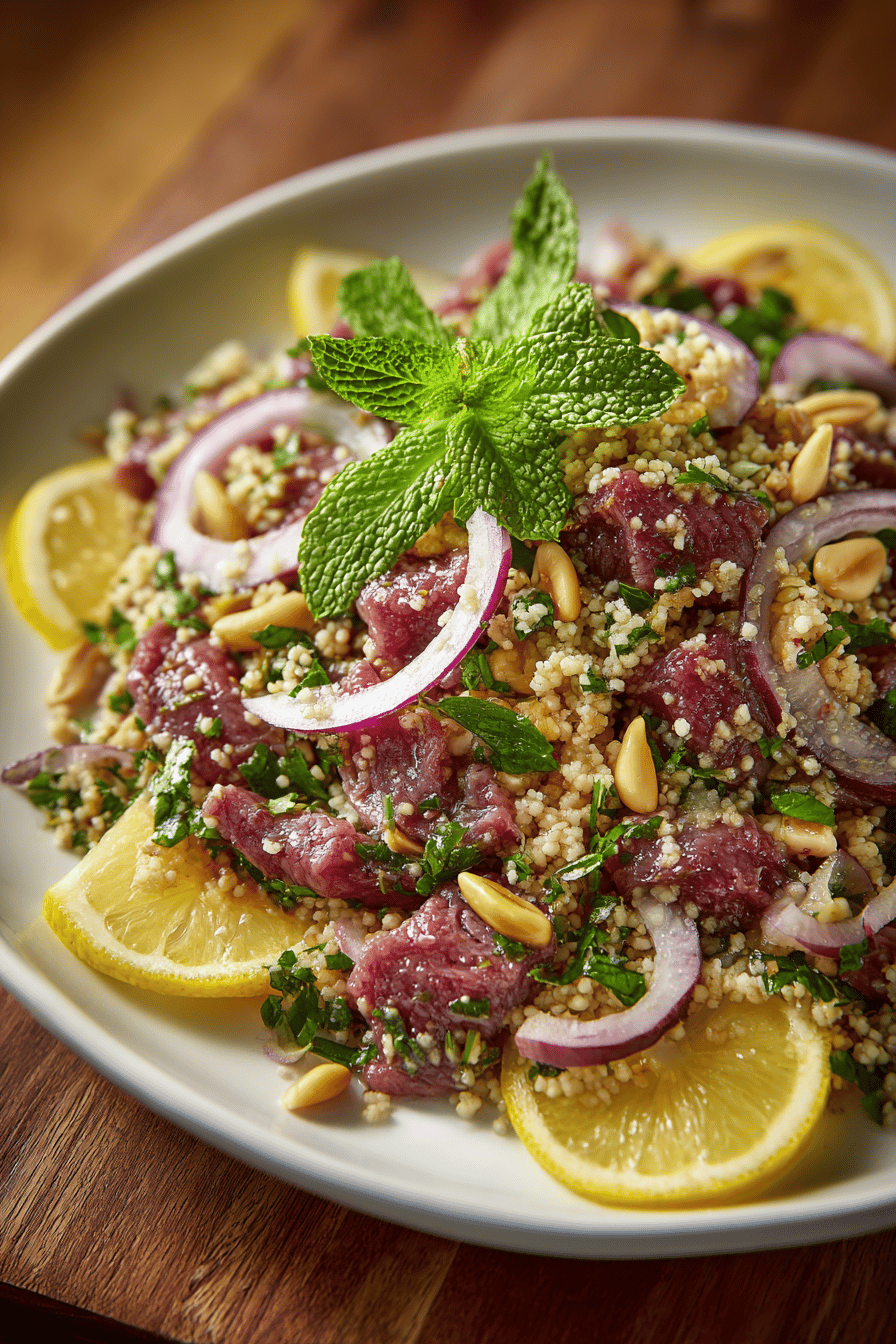 - 💡 Mint hold flavor integrity here. Fresh best but frozen thawed works if no other. Parsley and squeeze lemon as back up but less pungent. Lemon slices thin, avoid pith bitterness. Spritz lemon wedges over plated kibbé for bite, not soaking the whole dish. Salt very cautious; raw meat exaggerates saltiness. Olive oil quality non-negotiable: fruity or peppery extra virgins add mouthfeel nuance.