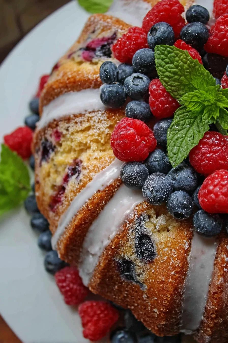Comfort food that actually tastes homemade because it is. Most bundt cakes feel dense and dry—this one stays moist for days. Fresh berries throughout, not just on top, so every slice has them. Glaze on top means it looks fancier than it actually is. Makes the whole house smell good while it bakes. One bowl mostly, cleanup’s minimal.