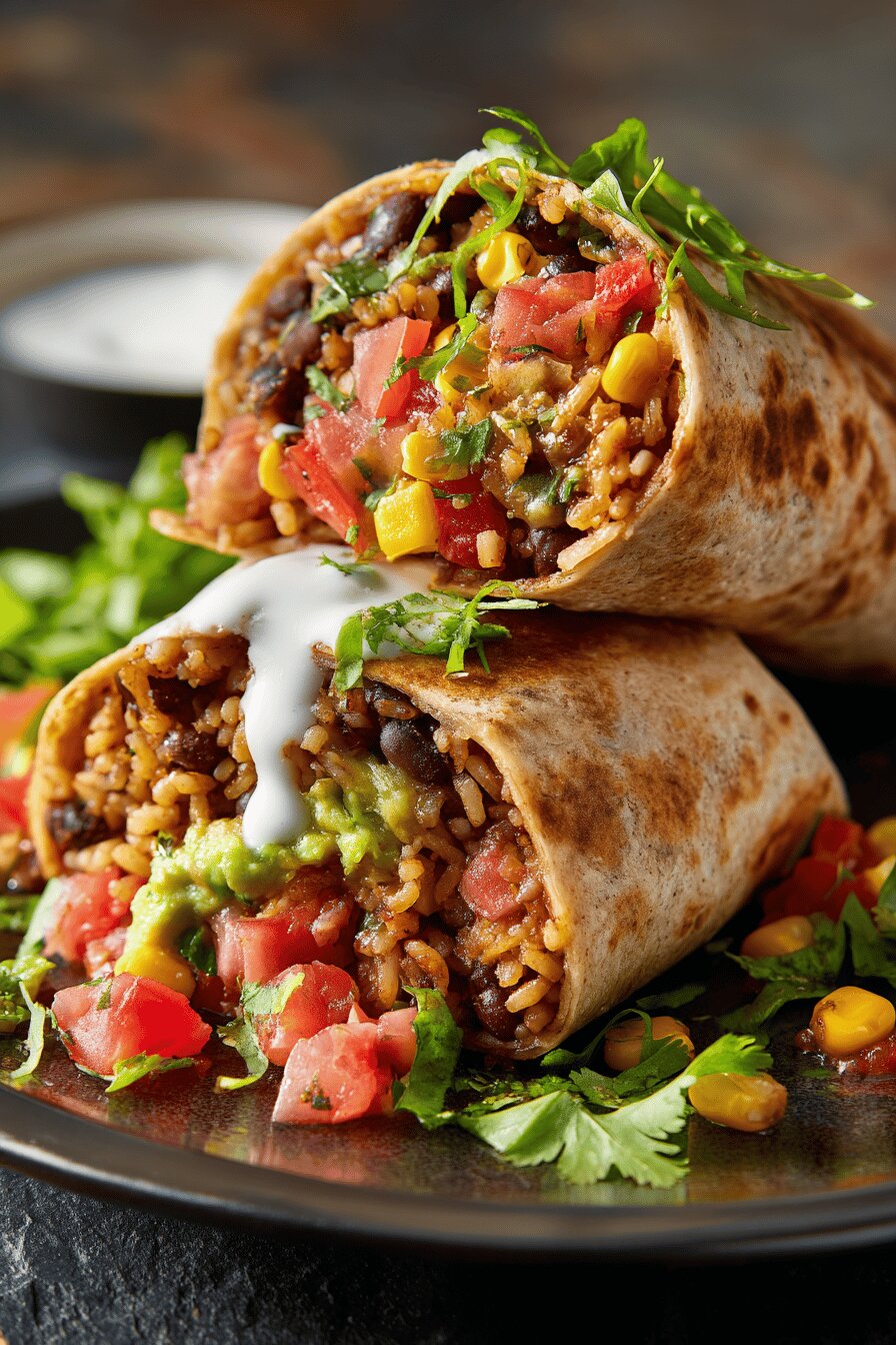 Brown basmati rice cooks in lightly salted water until fluffy. Fresh pico de gallo with tomato, onion, jalapeño and lime juice. Garlic-sautéed black beans smashed into thick refried beans. Creamy avocado mashed with lime juice, layered inside whole wheat tortillas. Sweet corn kernels and shredded cheddar add texture and richness. Burritos brushed with oil, gently browned on all sides until crisp. Serve hot, slightly charred edges, with a touch of sour cream on the side if you like. Hearty, balanced, with a spicy zip and freshness. Practical twists for busy cooks and substitutions included.