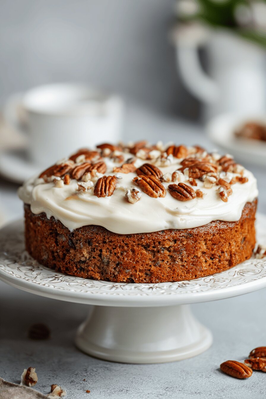 - 💡 Toast pecans on dry pan 4 to 5 minutes stirring often till fragrant and just turning golden. Burnt nuts throw bitter notes so watch closely. Chop nuts roughly to keep crunch contrast inside cake batter. Can swap nuts for toasted walnuts or almonds but flavor changes noticeably.