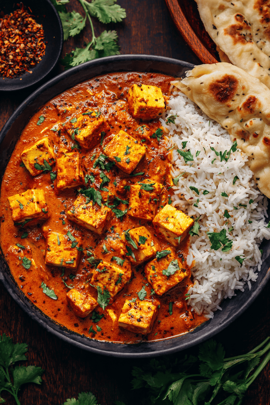 - Notes: Used mace for subtler spice, nutmeg can overpower. Cream can be swapped for coconut milk or cashew cream — coconut adds sweetness, use less chili if so. Tofu boiling followed by crisping is a trick learned after mushy disappointments. Sauce texture: not baby food, but no chunky tomato bits either — mash till almost smooth. Watch butter carefully; burnt butter kills sauce sweetness. Fresh coriander for brightness, dried just disappoints.