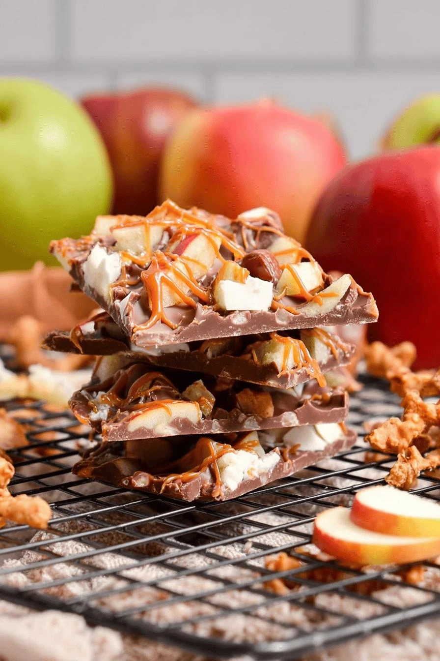 Tastes like you spent an hour on it. Takes 12 minutes prep, 2 in the microwave. No oven. No thermometer. Just chocolate and a spatula. Crispy pretzels, chewy caramel, tart dried apple. One piece hits all three at once. The white chocolate drizzle looks fancy but—honestly, it’s the easiest part. Works as a gift. Works as a snack. Works cold, room temp, doesn’t really matter. Keeps for days if it lasts that long.