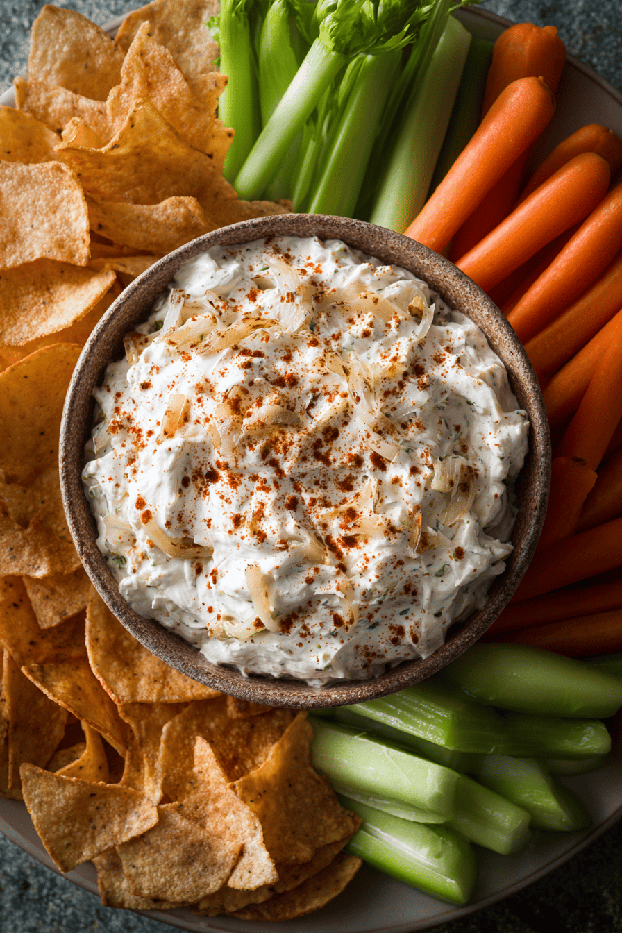 - 💡 Serve with crunchy textures to balance dip quasi-sticky gelatin feel. Chips, fresh crisp crudités cut rich creamy back. If dip thickens too much chilling, don’t overfix with liquid. Small increments milk or lemon juice best, stirring gently. Garlic fresh and minced not powder is critical. Too hot or long caramelizing burns sugars bitter; medium-low steady heat beats structure loss.