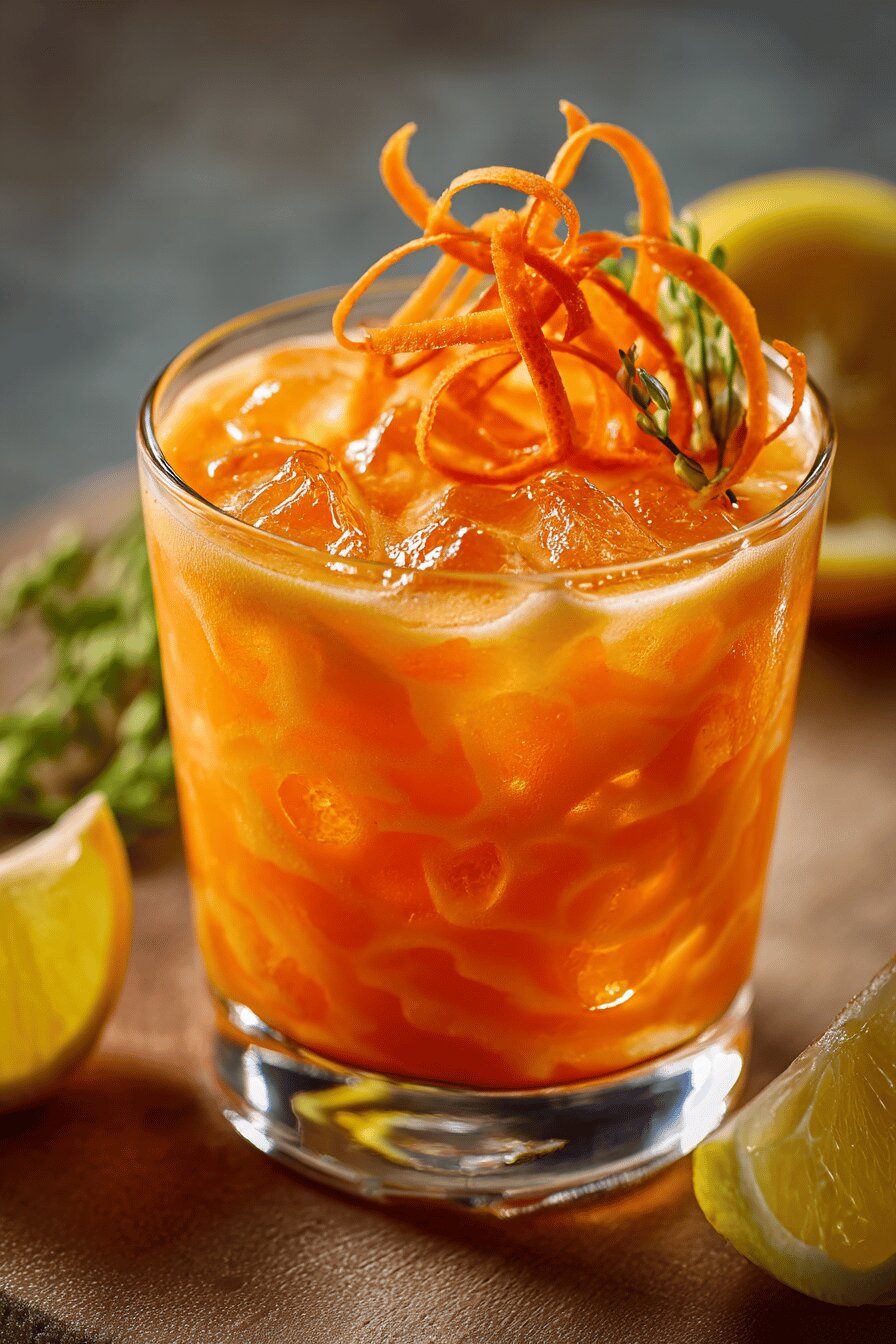 - 💡 Serve drink over fresh ice cubes added right before pouring the cocktail. Ice keeps drink cold without diluting too fast. Don’t stir after pouring; layers stay balanced. Garnish with carrot ribbons just before serving so they stay crisp and visually appealing. Rim glass with lemon zest or sugar optional but adds pop.