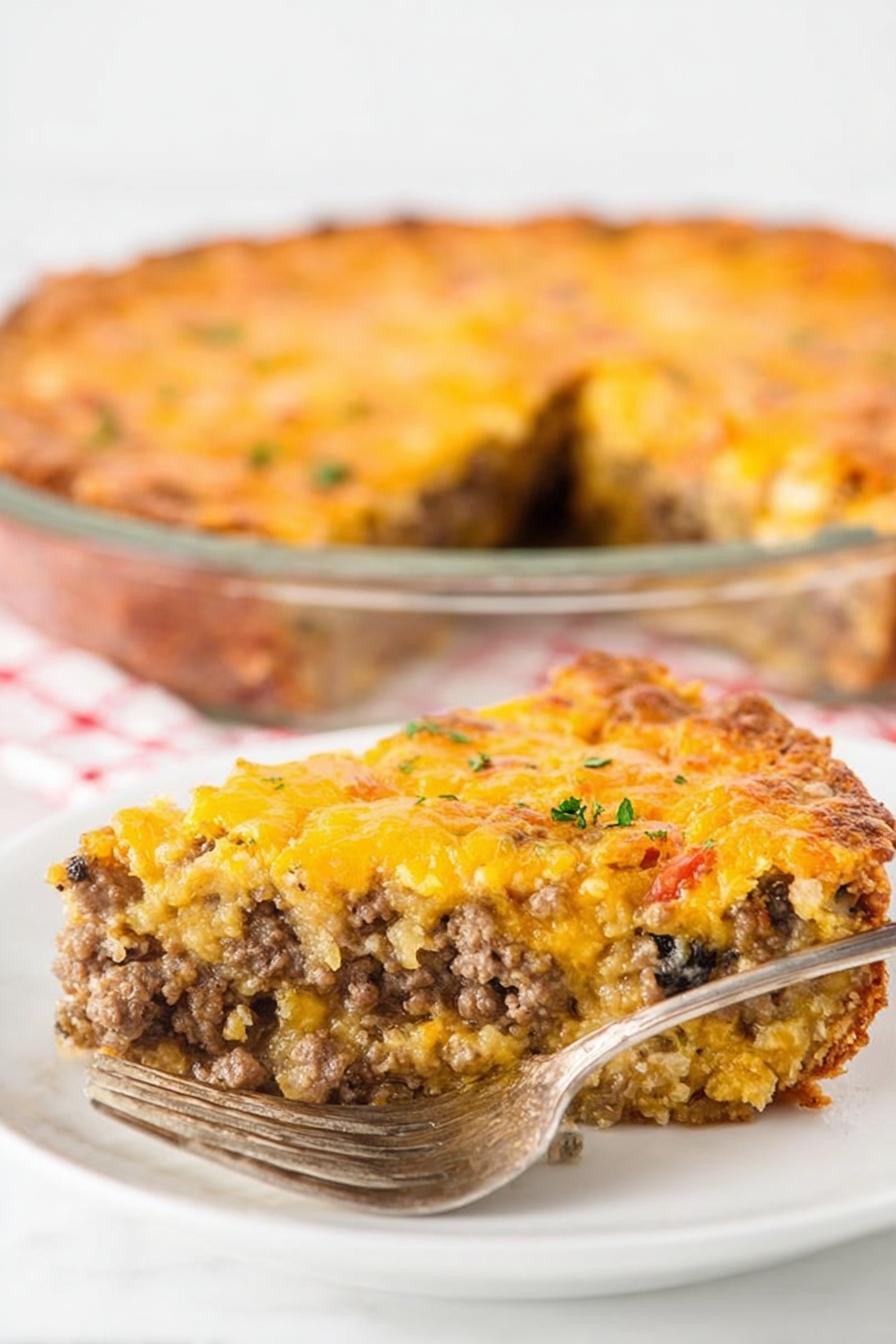 - 💡 Season beef thoroughly before cooking, beyond just salt pepper. Paprika lifts umami, gives smoky notes. Onions bring sweetness; can swap with shallots or scallions if onions overpower air. Drain fat carefully—not all, some fat keeps filling juicy. Layers go beef, cheese, beef, cheese to trap melts inside. Pressing beef base creates crust foundation. Cheese layers must be wide, don’t pile in center only or edges dry. Pour batter slow to trap air; if poured rough, pie texture turns dense and dry.