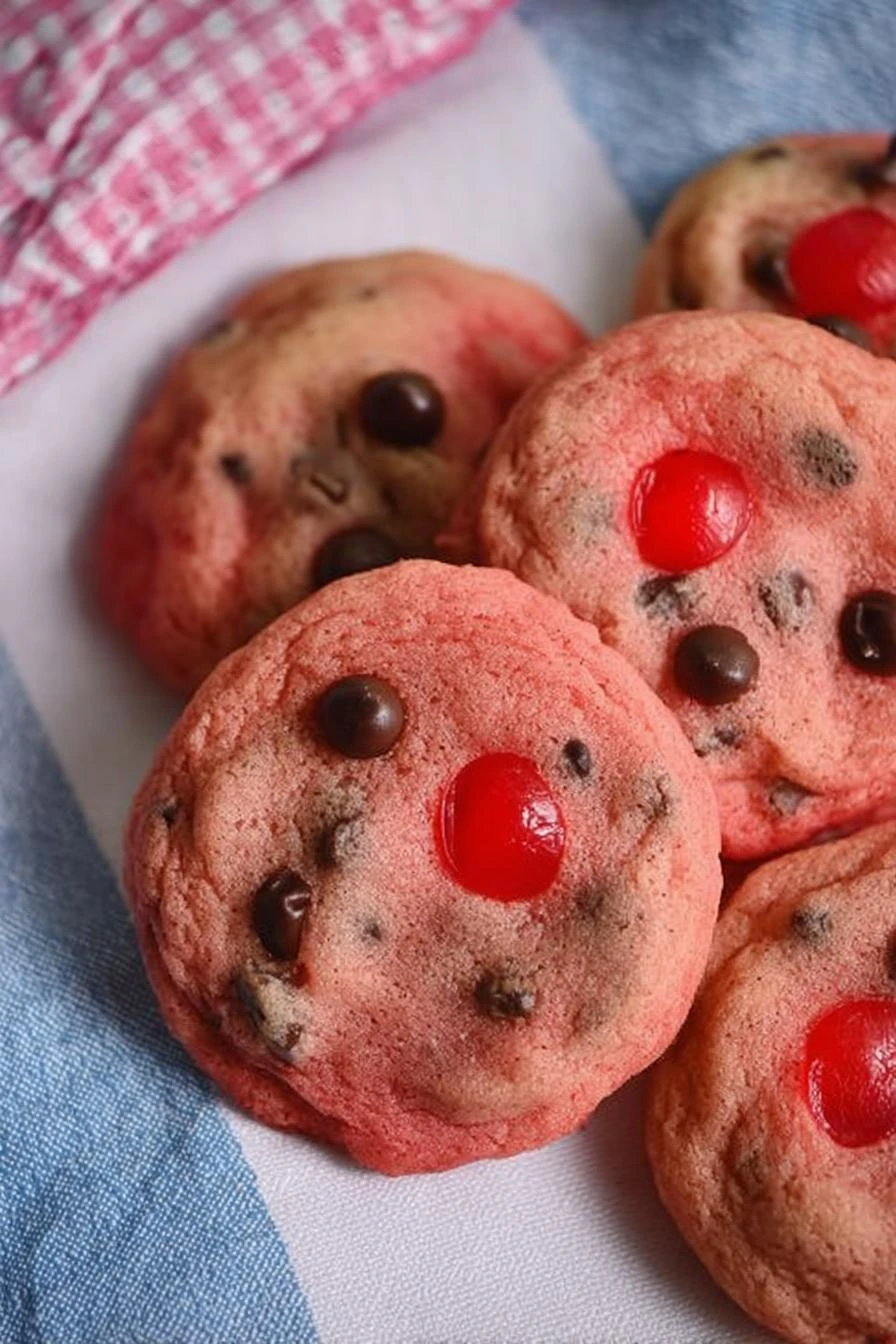 Takes 28 minutes total from start to eating one. Fifteen minute prep, thirteen in the oven, done. The cherries stay soft inside the cookie. Not dried out. Not crunchy. That specific texture where they’re almost jammy. Comfort food that doesn’t feel heavy. Chocolate and cherry together — sounds fancy, tastes like coming home. Chocolate chips melt into little pockets. Maraschino cherries give you bursts of something bright and sweet you weren’t expecting. The dough needs chilling, which sounds annoying but actually means you bake better cookies and you get to walk away for an hour. Works fine if you’ve got time later.