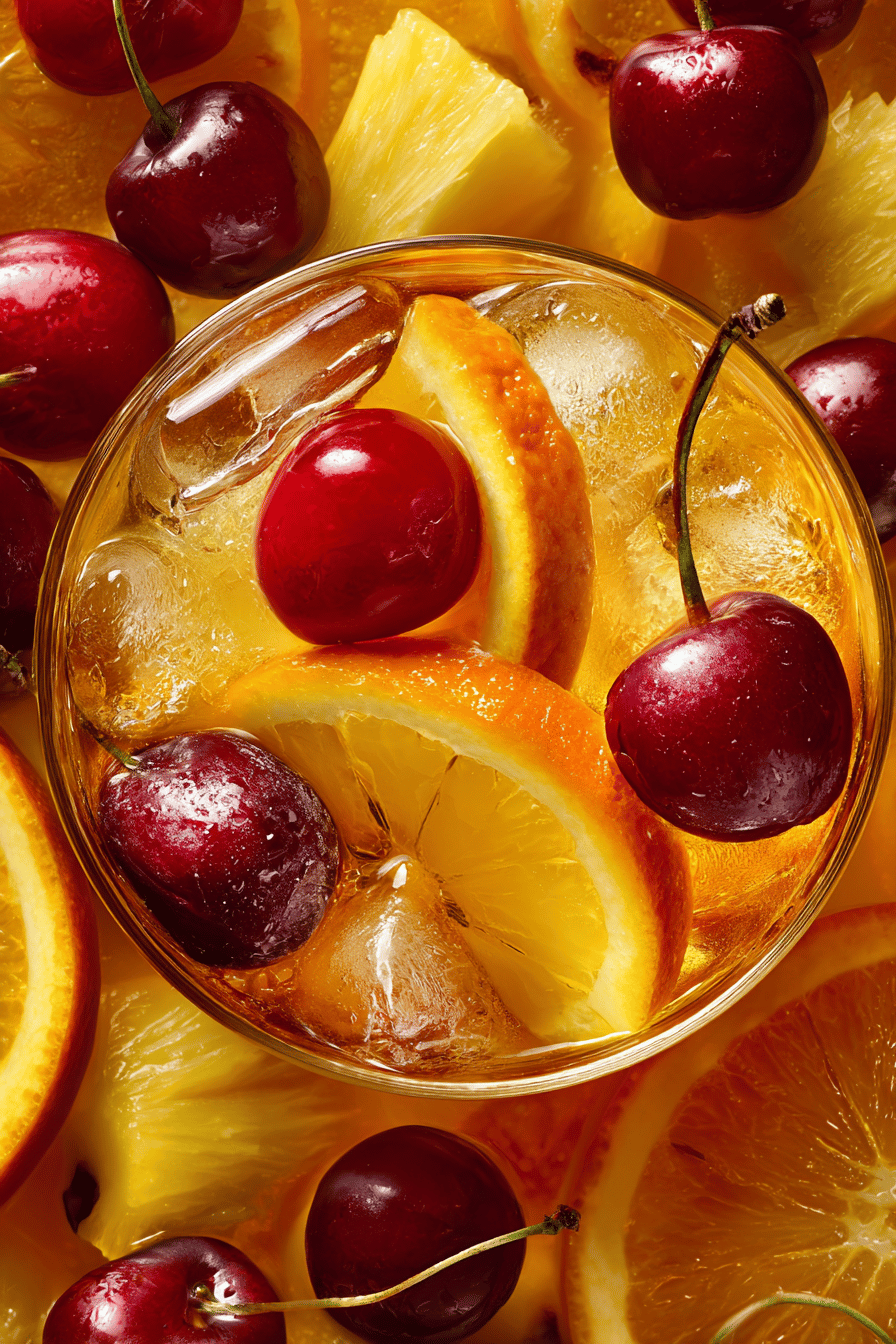 - 💡 Thinly sliced plums help release aroma but retain structure; not mush. Oranges sliced with peel to add slight bitterness, complexity, texture. Keep fresh cherries whole, add last for pops of juiciness and contrast. Syrup from sour cherries anchors sweetness, depth. Chill enough for flavors to mingle but short—20 mins max.