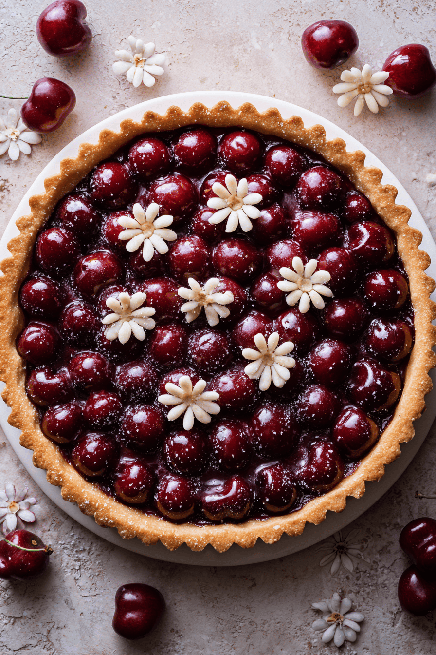 - 💡 Cooling step critical. Hot filling too loose; can drip or run. Room temp rest 45-60 mins firms filling as juices gel with tapioca. Chilling optional but better for slice stability. Store loosely covered at room temp max 2 days to avoid crust sogginess. Fridge toughens crust. Reheat gently if chilled. Tray under tart needed to catch drips; cherries bleed juice occasionally. Use fresh cherries if firm; frozen thawed, drained, excess juice discarded to keep filling ratio intact. Greek yogurt works; thicker but reduce flour bit if dough sticky.
