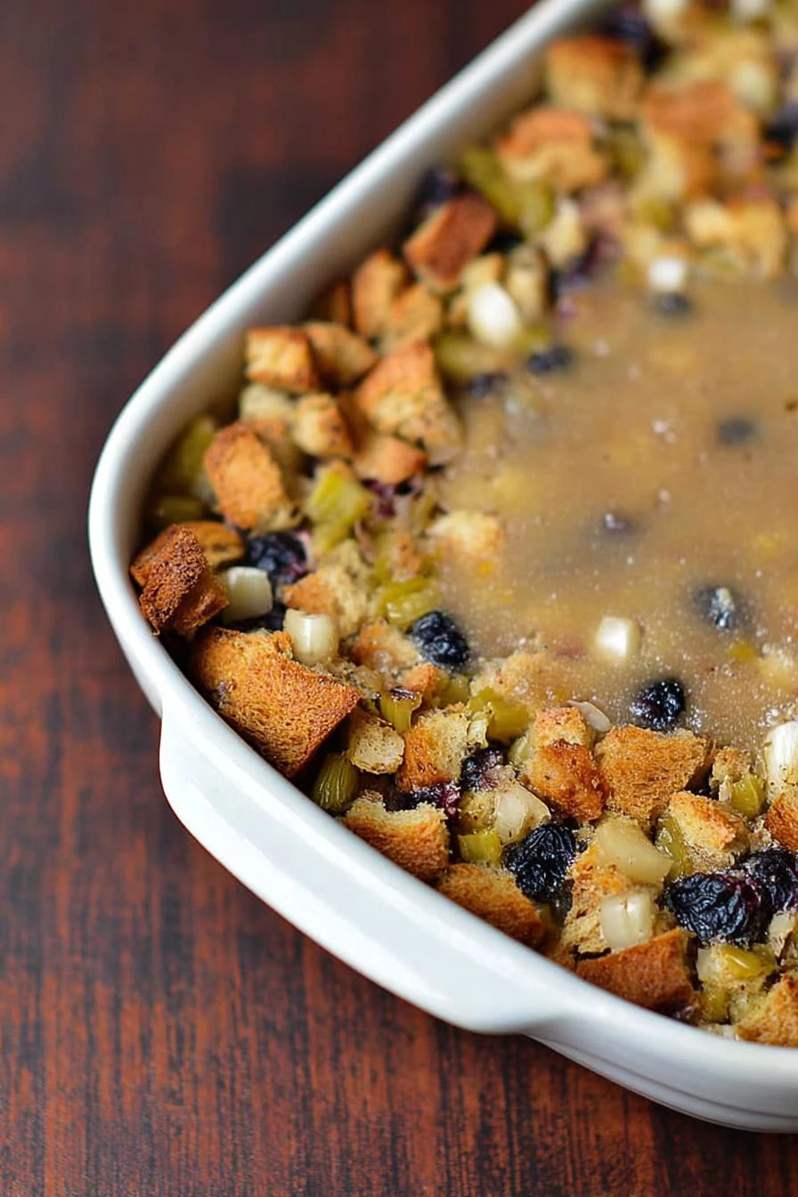 What’s the deal with the 20-minute rest? The stuffing firms up. Bread absorbs the liquid it needs and stops being soggy. The whole thing sets and tastes better. Sounds like nonsense but it actually works. Don’t skip it if you have time.