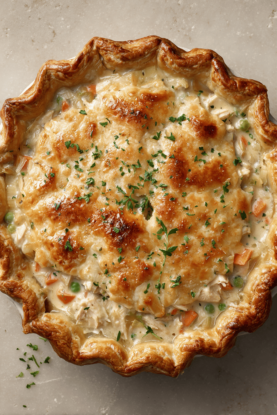Starting with just basics is dull. Carrot and celery rough chopped, shallots sliced fine. Garlic minced so tiny it melts. Butter cracks and foams as it hits warm pan. That smell, soft sweet onion twisting with garlic, fills kitchen. Dust flour, whisk, wait till bubbling liquid thickens—silky sauce rhythm echoes patience. Chicken chunks bob like islands, peas pop green color. Cheese melts in pockets, little gold treasures waiting. Pie crust laid carefully; edges pinched tight by fingers, no mess. Egg wash brushes on shiny gold promises. Oven hums, waiting. The crackle as pie bakes, edges crisp, steam whispers out vent slits. Resting makes cut cleaner; slices hold, savory steam lifts. Comfort food? No. An ode to intuition and simple shifts that work.