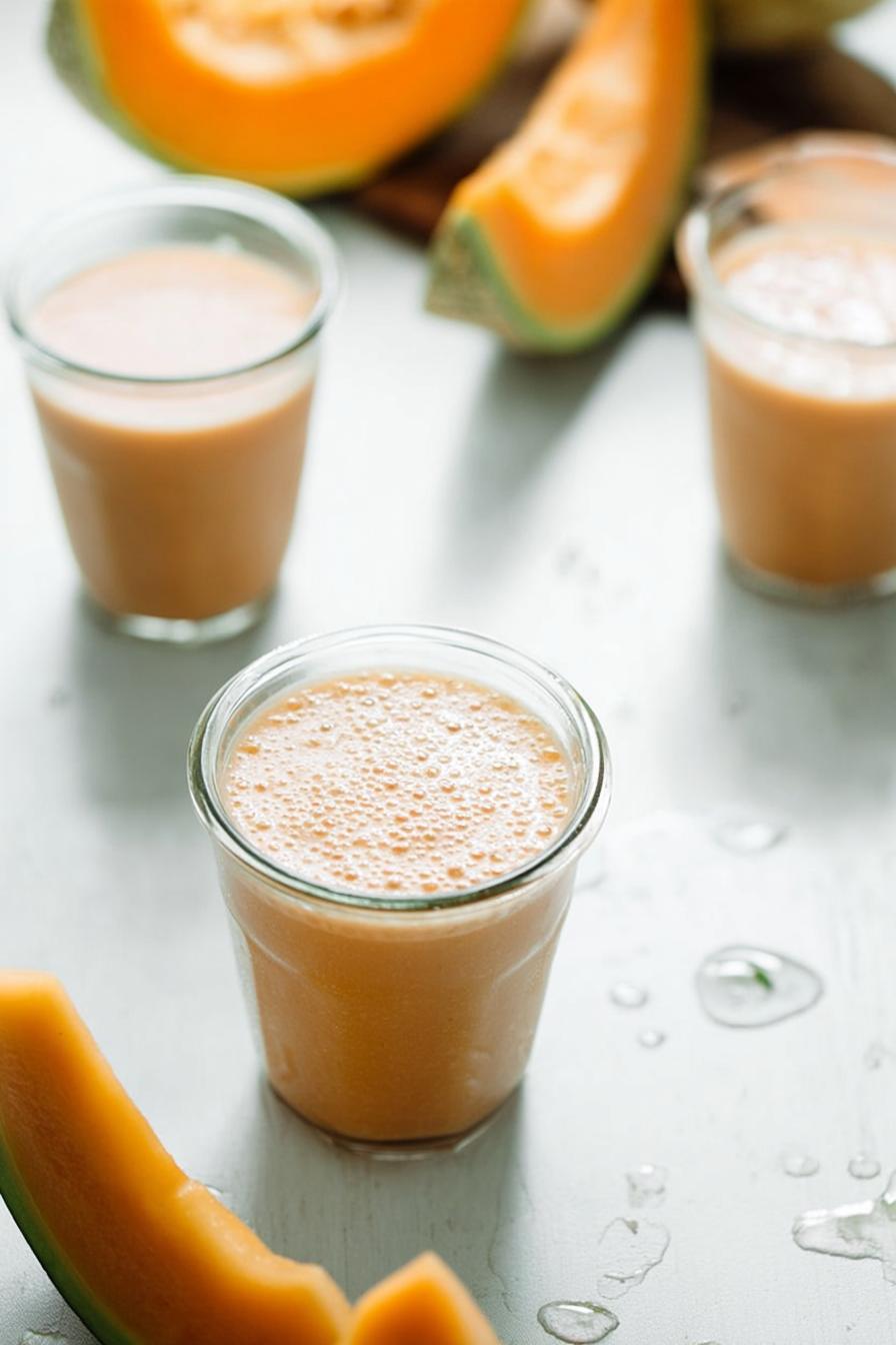 Melons vary drastically in water content and sweetness seasonally and by origin. If melons feel soft when pressed slightly, reduce ice, or add more frozen banana to rescue texture. Peaches must be ripe but firm; too mushy, and you get gritty or overly sweet backing. Frozen banana is non-negotiable for thickness and creaminess. Coconut water substitutes orange juice for a cleaner, less acidic backbone, but fresh citrus can be used in a pinch if you want zestier profile. Milk is flexible; plant-based milks like oat or almond give a different note entirely. Agave nectar is optional since fruit sweetness fluctuates. Always taste before sweetening. Prep melons chilled for best aroma release during blending. Avoid leaving fruit out too long or it becomes water-logged.