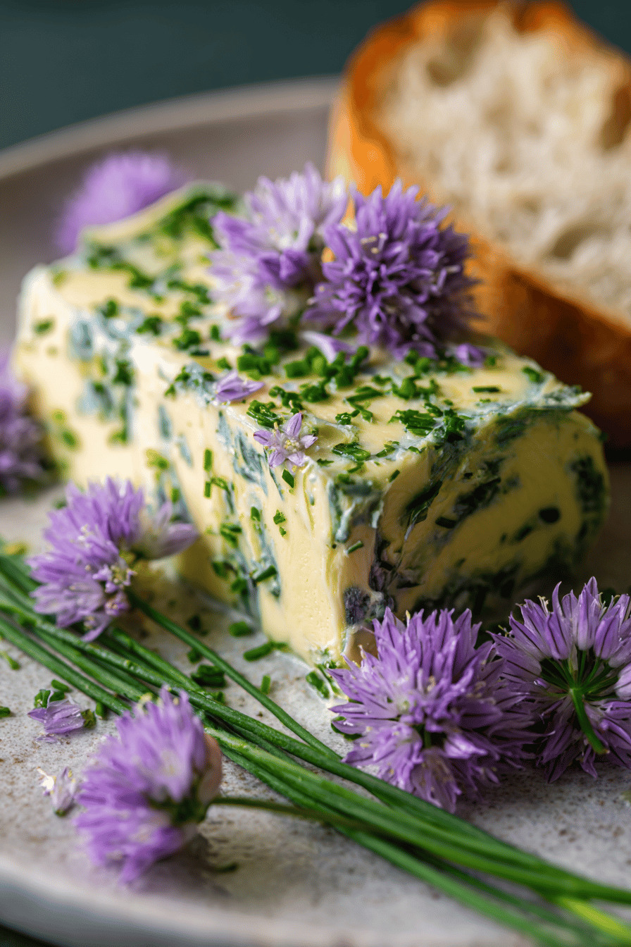 - 💡 Chilling mandatory. Butter soft at room temp ruins shape during slice. Freeze optional after chilling, freeze tight wrap. Thaw slow fridge overnight to hold firm log. Press blossoms onto surface gently with clean dry hands; wet hands bruise petals and introduce color bleed. For less onion punch, swap chives for tarragon. Petals contrast soft butter; biting flower bits give texture surprise. Slice thickness varies use based on spread or melt time needed.