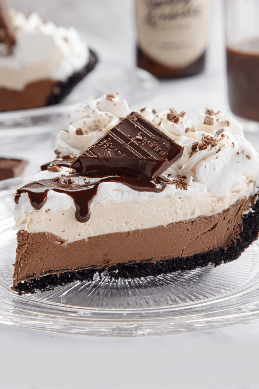 - 💡 Optional hot fudge sauce can drizzle right before serving. Temperature matters here—too hot melts whipped topping instantly, so warm fudge slightly off heat is better. Keep extra chopped chocolate for garnish—texture contrast matters, adds chew. If fresh whipped topping, chill it slightly before folding chocolate so it doesn’t melt chocolate. Homemade crust or graham crust adds flavor but more prep. You can swap marshmallow fluff with 3/4 cup cream cheese and 1/4 cup honey for slight tang and less sweetness but affects volume. You can freeze crust but pie layers don’t freeze well as texture suffers.