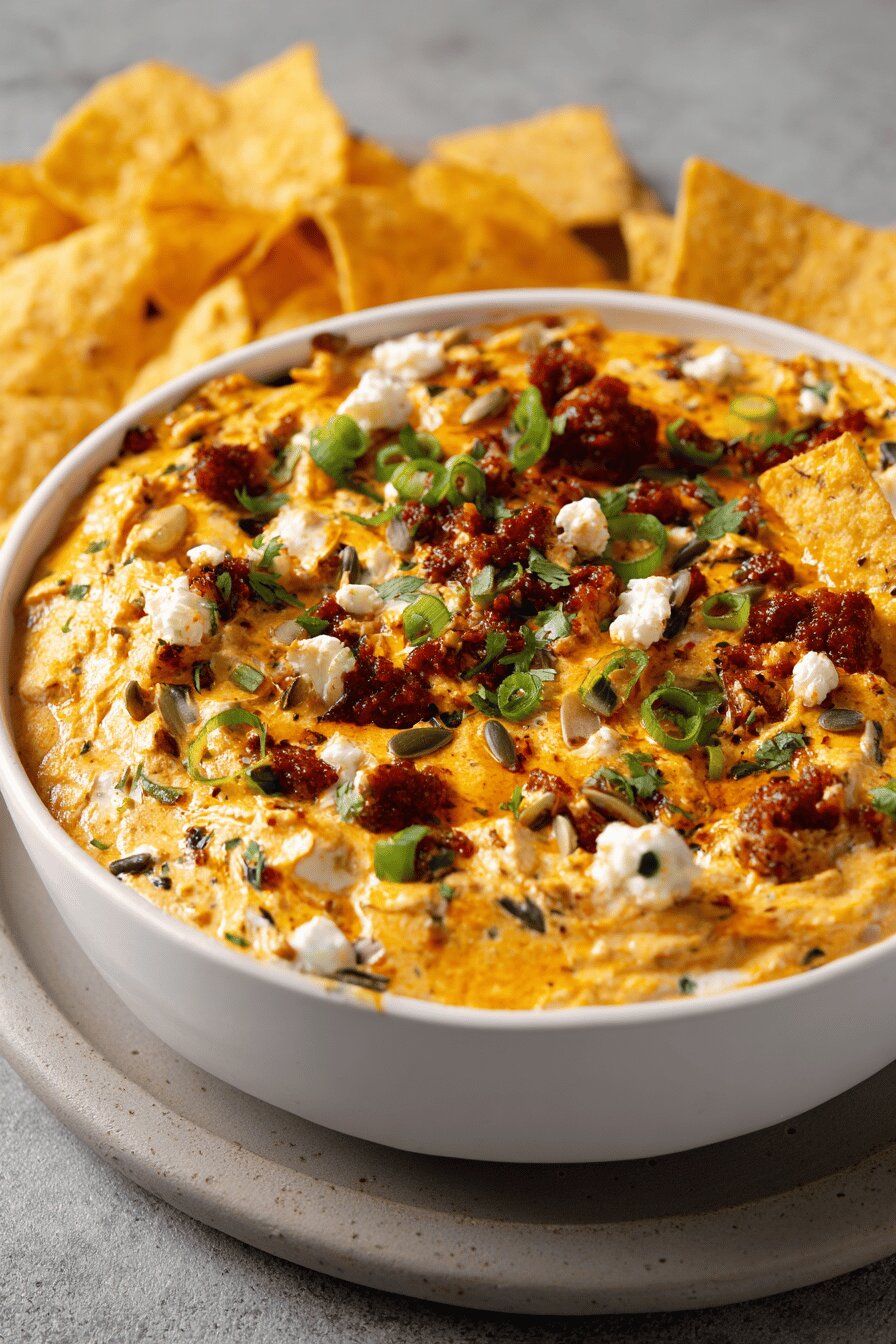 - 💡 When plating, spoon cream cheese, use back of spoon to create waves and valleys; oil pools here nicely, texture helps hold mixture in place. Avoid flat spread, makes dip bland visually and thin in flavor spots. Drizzle reserved chorizo oil gently in grooves — gloss without pooling too much.