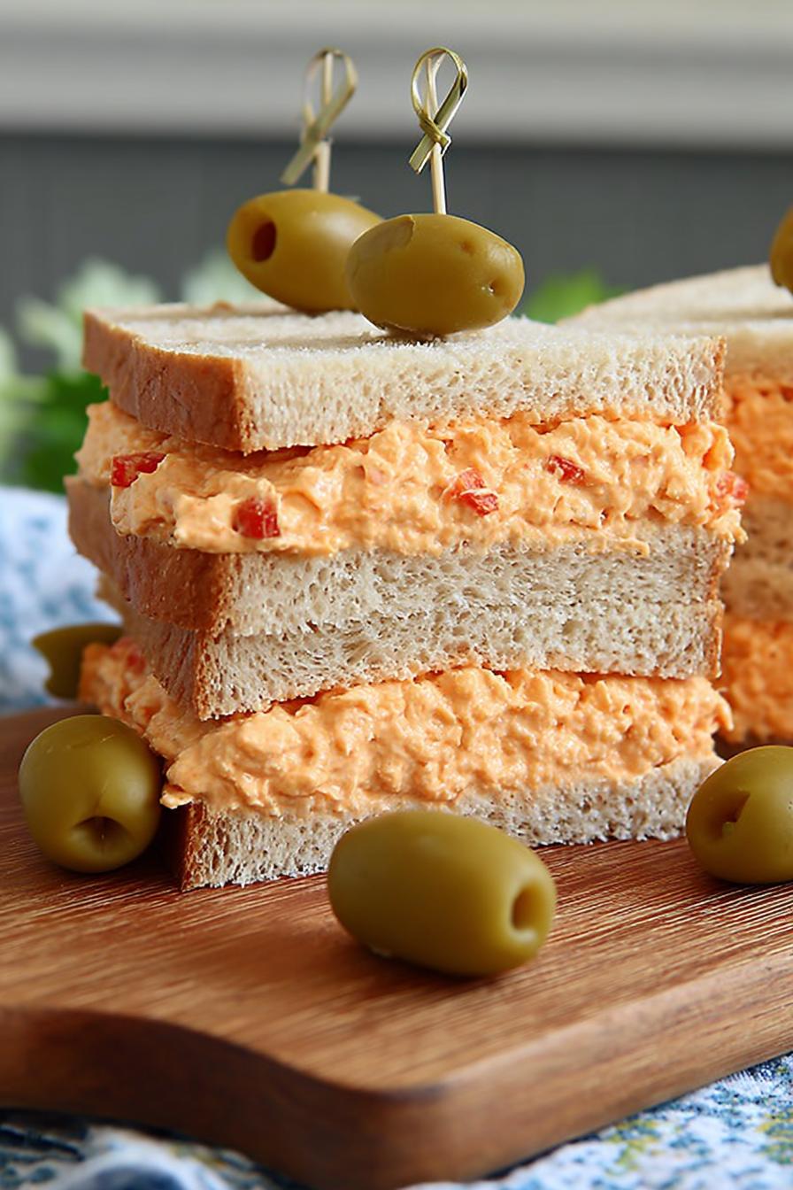 Spread cold and firm keeps shape, no melt mess. Add pickles or olives just before sandwich build. Use thick sliced bread for best hold. Consume within a couple hours or bread napkins spread moisture weirdly. Wrap airtight, not loose.