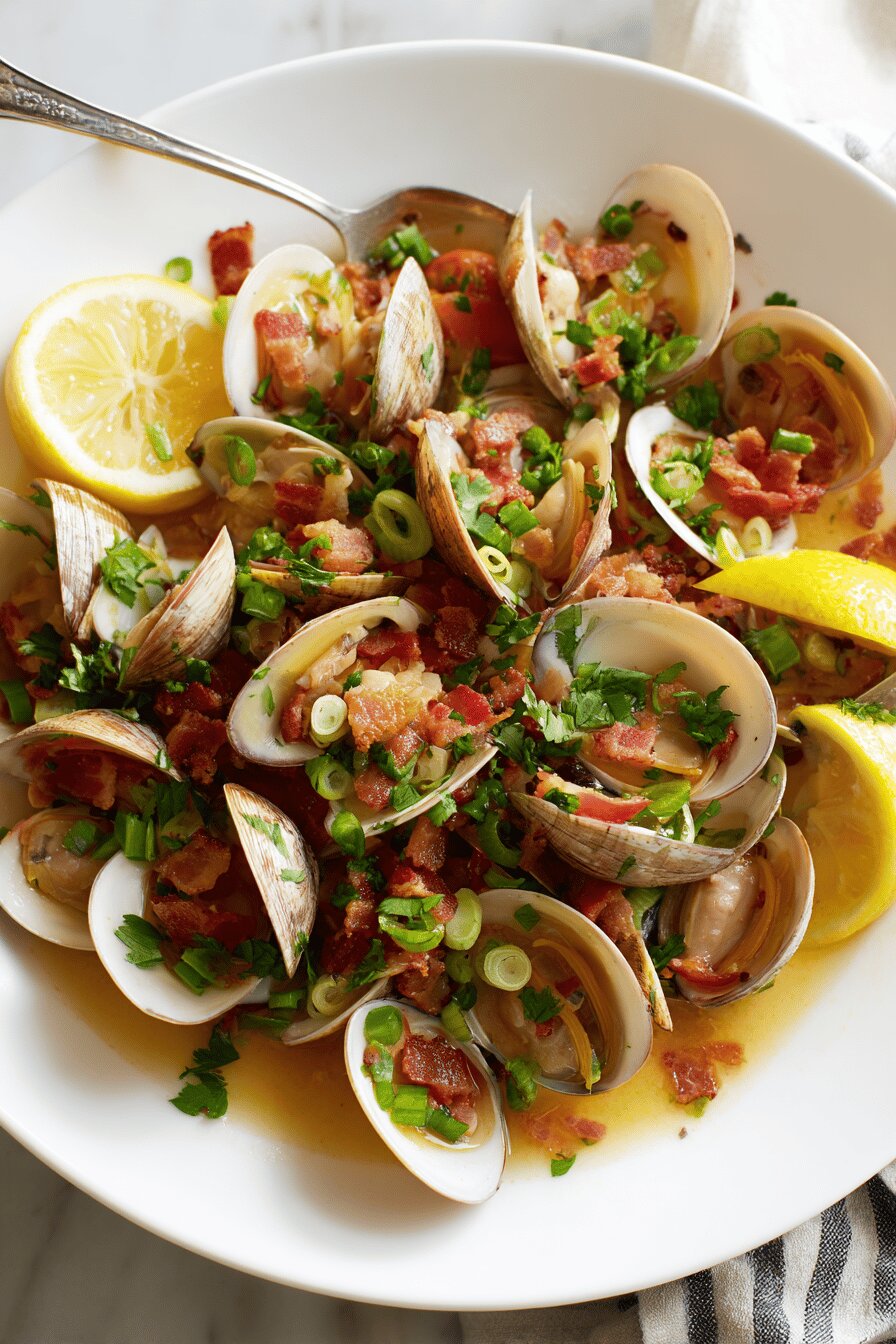 - 💡 Serve clams hot with chopped parsley and green onion. Herbs added last keeps fresh bite, avoids wilting. Black pepper layering adds mild heat; add lightly, don’t cover lemon acidity or briny clam flavor.