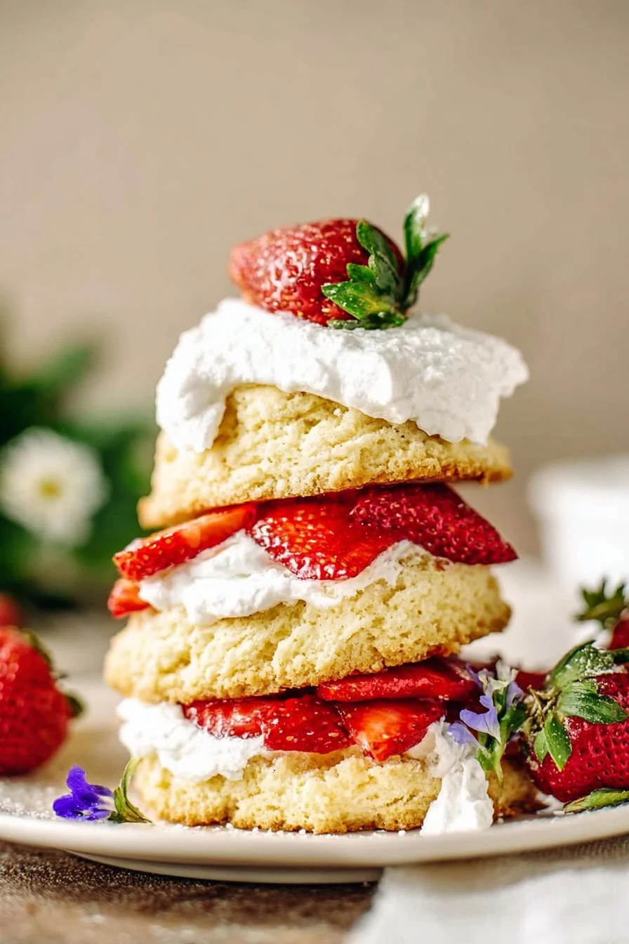 Takes 50 minutes total, which is pretty reasonable for dessert that tastes like summer showed up on a plate. The biscuits stay tender because you barely touch the dough—less handling, better texture, every time. Whipped cream with sour cream doesn’t collapse after an hour, so you’re not eating soupy cake by the time you actually get to it. Real strawberries, not the canned kind. They get soft and juicy in their own syrup without any fussing. And honestly, it’s the kind of dessert that works for literally anything—dinner party, Tuesday night, standing in the kitchen at 9 PM because you need cake now.