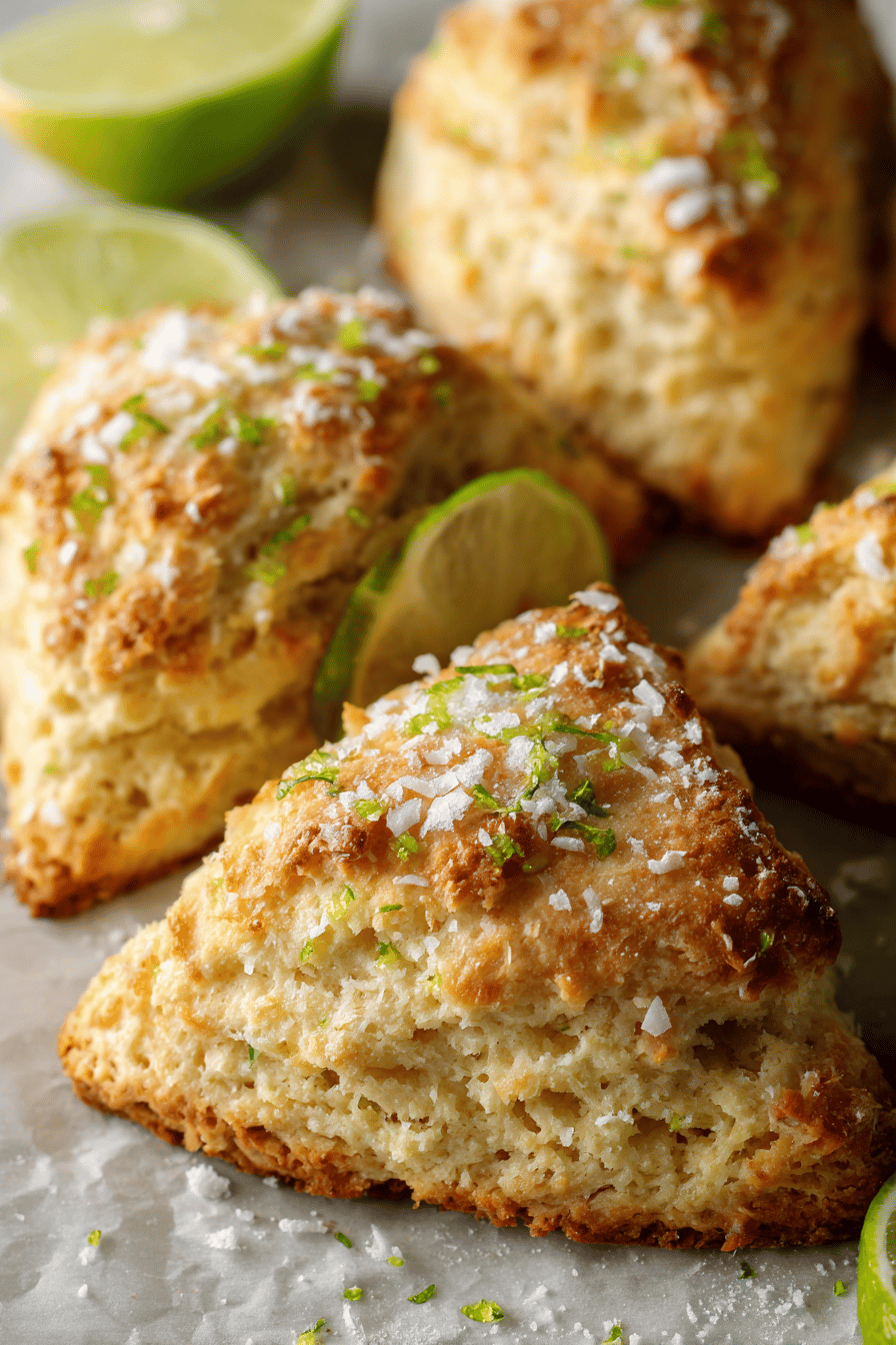 Use unbleached flour for better flavor and texture. Brown sugar adds depth compared to plain white sugar. Coconut cream richer than regular coconut milk—thicker, better for hold in dough. Margarine chosen for vegan and non-dairy fat, cold cubes essential. Lime zest fresh, finely grated without white pith to avoid bitterness. Unsweetened shredded coconut adds texture and contrast, lightly toasted if desired but not required. Slightly less sugar than classic for balance with coconut and lime tartness. Baking powder sufficient agent for rise. Keep everything cold until mixing to achieve flaky crumb.