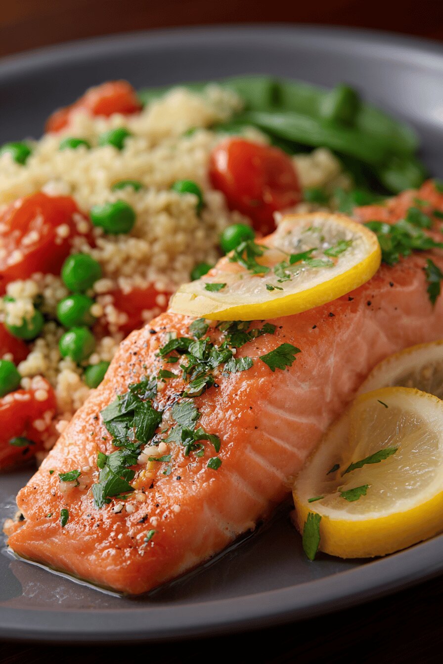 - 💡 Pack meals in separate sealed containers if possible. Keeps flavors clean, textures stable. Salmon cold or room temp works best – no need reheat. Taboulé easier to eat chilled. Store in fridge up to three days, check freshness by smell and texture. Avoid moisture accumulation inside containers, pat down before sealing. Portion control aids grab-and-go situation, cutting down prep stress later. For extra freshness, add lemon wedge at serving. Skip dairy, nuts simplifies allergies, keeps focus on natural ingredients and clear Mediterranean notes.