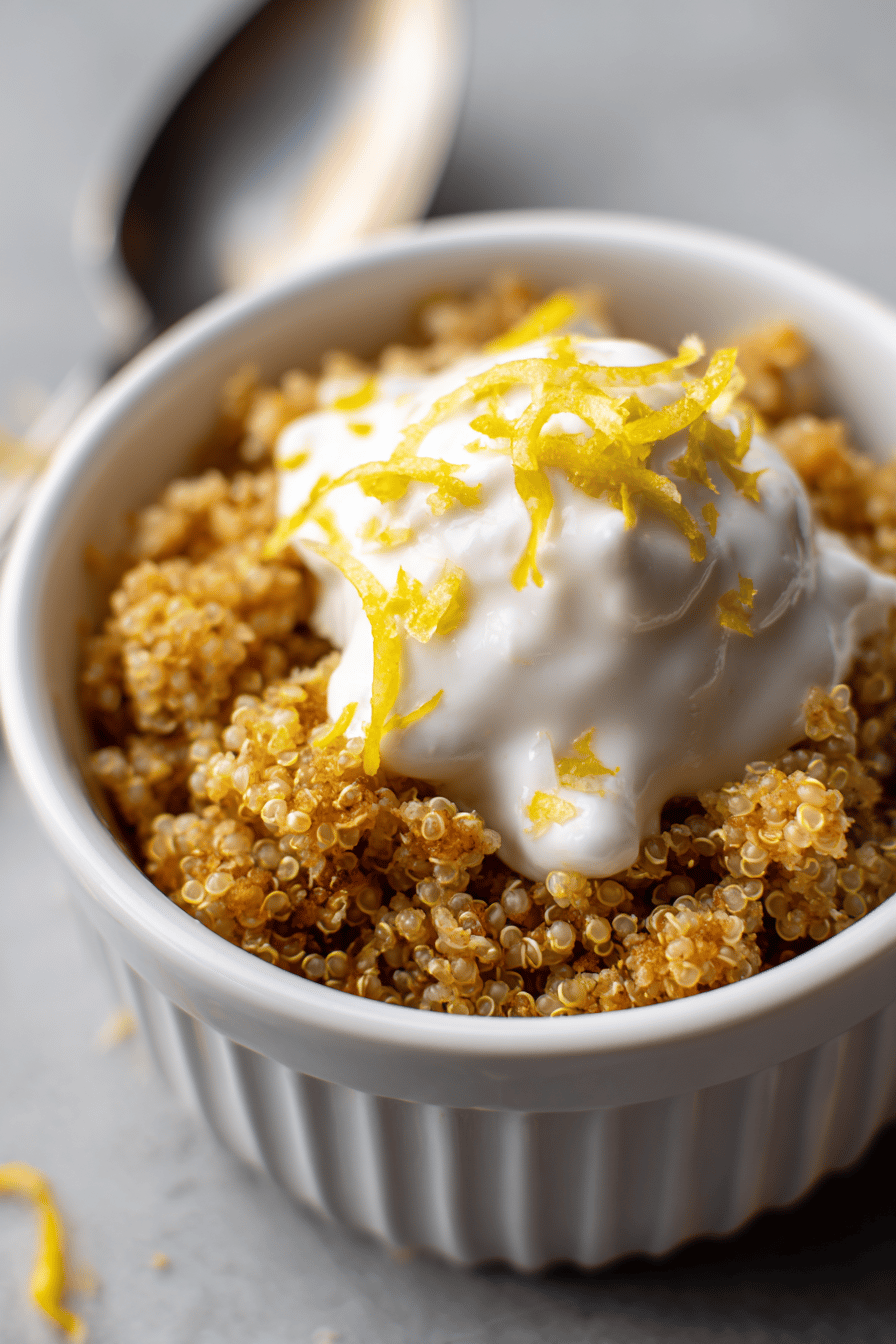 A corn-based crumble dessert with a coconut sugar topping and a lemon zest twist. Uses quinoa flakes replacing oats and almond flour swapped with chickpea flour. Dairy-free, nut-free, egg-free, vegetarian. Prepping involved chilling dough, baking with a golden finish. Crunchy, sweet, slight citrus tang. Ready in 2 hours 15 minutes total. Serves 6. Simple pantry ingredients. A unique texture from quinoa flakes. Ideal as sweet snack or light dessert.