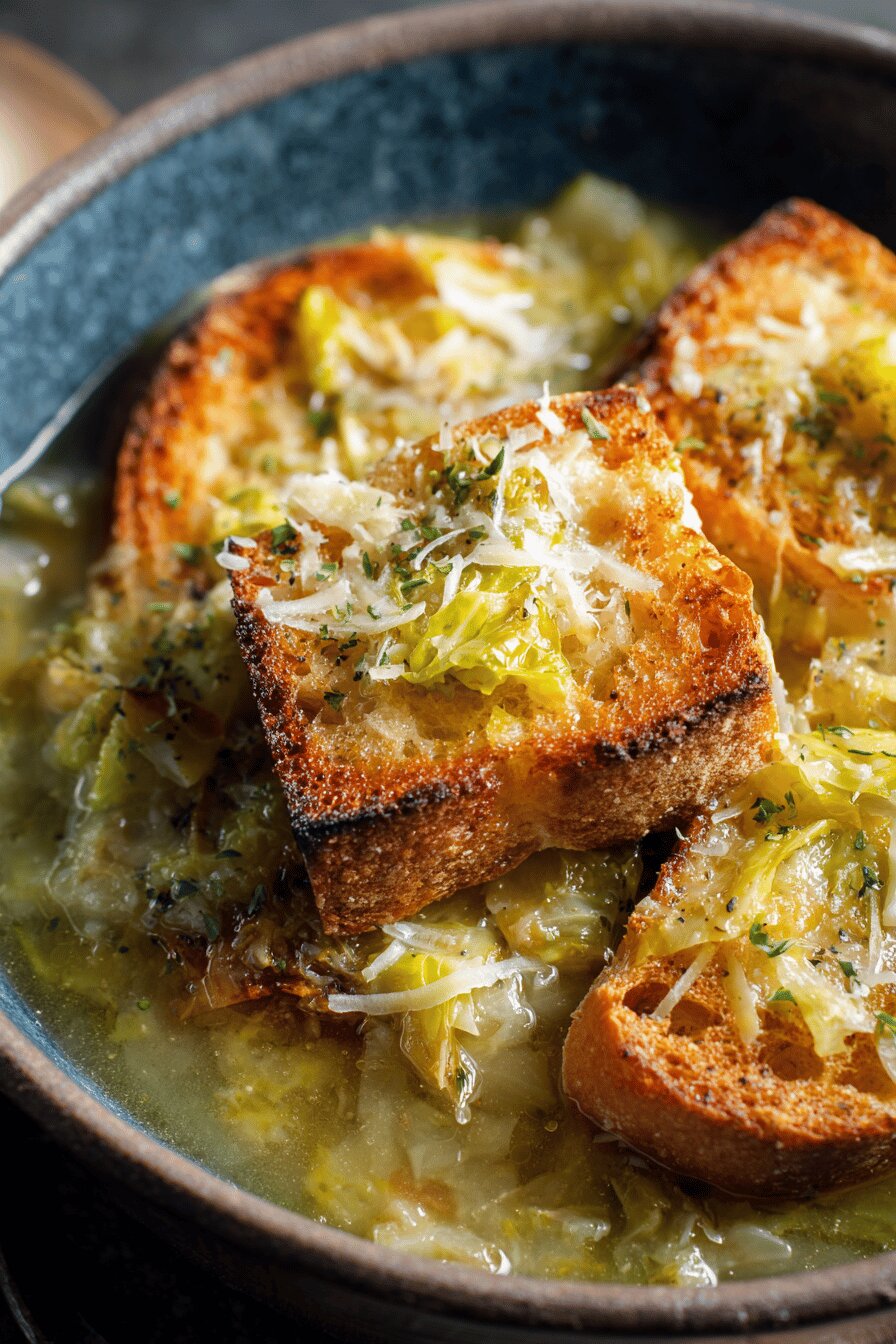 - 💡 Bake uncovered at 190 °C about 25-35 minutes until cheese bubbles and broth thickens slightly—keeps cabbage fresh, not overcooked. Serve immediately while layers distinct: crunchy lemon toast beneath, tender cabbage, melted cheese melting warmth. Watch oven carefully to prevent drying cheese edges.