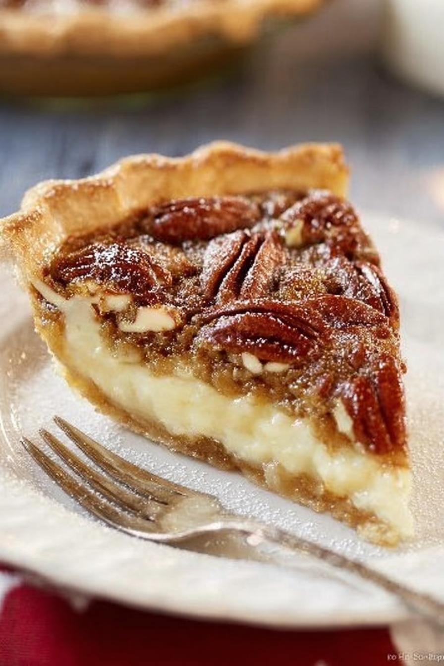 - Now for pecan filling. Whisk 3 eggs lightly, just until homogeneous, not frothy. Add sugar, maple syrup, and remaining vanilla, combine gently but thoroughly. Stir chopped pecans in last, folding to keep nuts afloat instead of sinking to bottom pie. Pecans must be distributed evenly. Pour this carefully over cream cheese layer, almost filling crust to edges but not overflowing. Place pies on rimmed baking sheet to catch drips — a kitchen lifesaver in past messy attempts.