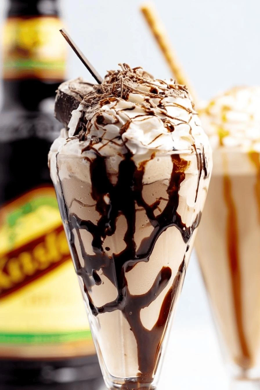 Vanilla ice cream and coffee-flavored ice cream—one cup each. Don’t skip the coffee flavor. Regular vanilla alone gets boring. Whole milk. Not cream. Not half-and-half. The ratio matters or it gets too thick to drink. Two ounces vodka. Any decent vodka works. The expensive stuff doesn’t matter here because everything else covers it. One ounce Irish cream liqueur. Baileys is the obvious pick. Does the job. One ounce Galliano liqueur. This is the swap that changes everything. Herbal brightness instead of Kahlúa’s dark coffee heaviness. If you can’t find it, Kahlúa works. Not the same thing though. Chocolate syrup for the glass. For drizzling. For texture. Whipped cream. Just cream you whipped. Comes out better than the canned stuff.