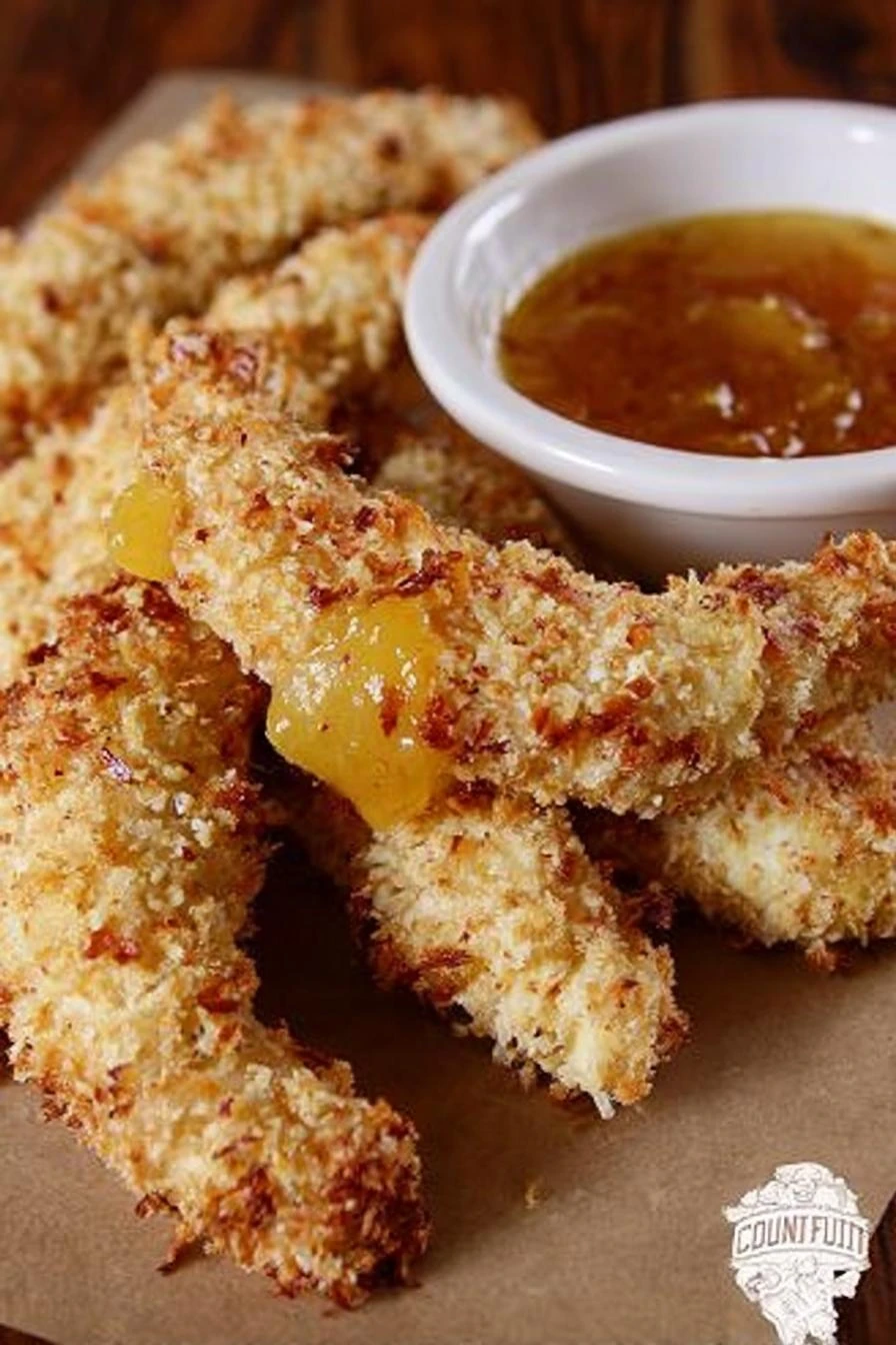 Crispy coconut coating, pineapple mustard sauce, done in 39 minutes. That’s it. Had a bag of coconut and some chicken tenders on a Tuesday. This happened. The crispy exterior stays crispy even after it cools, which matters if you’re feeding kids or meal prepping for the week.