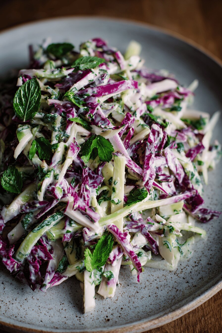 - 💡 Whisk dressing creamy but not gluey. Yuzu vinegar bright but subtle punch—too much overwhelms. Mix mayo with crème fraîche for body and slight tang. Mustard whole grain adds grip and umami hint. Taste often, adjust salt and tang slowly. Dressing thick coats cabbage but doesn’t drown it.