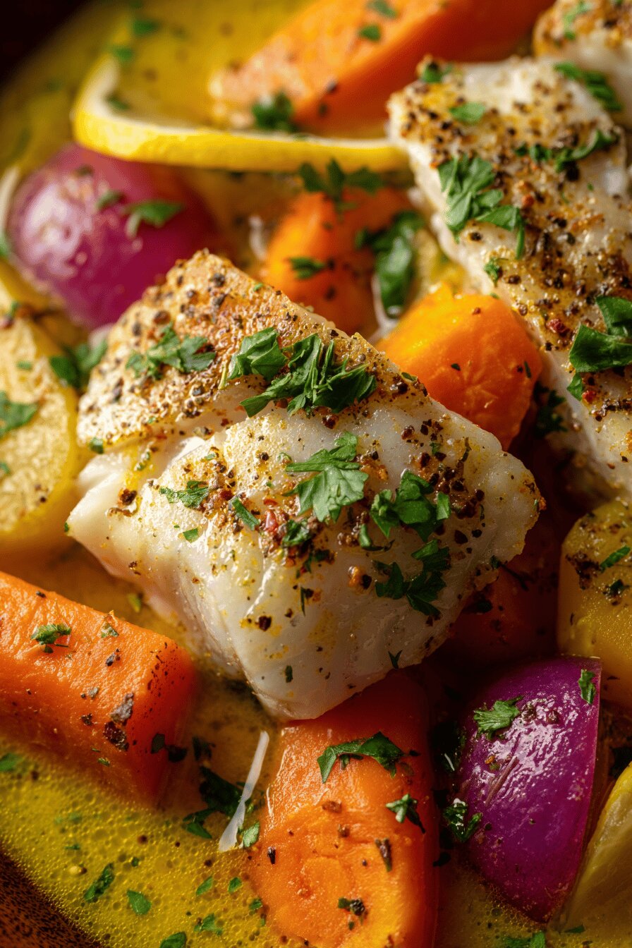 - 💡 Cook aromatics first in oil. Onion, garlic, and ginger. Saute until fragrant. This builds the flavor base. Then add fish with marinade. Stir in broth and coconut milk. Simmer gently. Don’t rush, keep fish moist. Watch for just opaque.