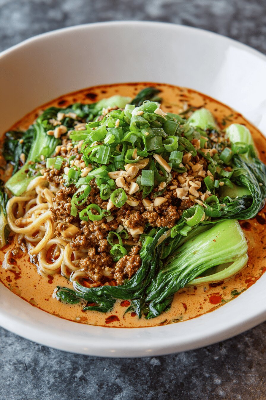 - 💡 Assembling fast keeps textures alive. Spoon sauce evenly, then noodles, pork on top. Broth poured warm just to moisten base. Not drowning or washing out layers. Garnishes matter; toasted peanuts and mixed sesame seeds add crunch and aromatic lift. Green onions slice thin, scatter over last for brightness. Timing key; noodles too long and turn gluey, sauce thickens too much in serving bowl, thin with warm water when reheating leftovers.