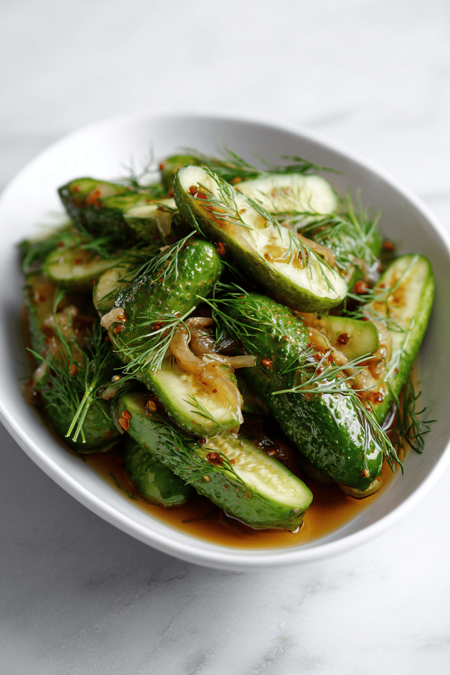 - 💡 Packing jars tight but not pressed prevents trapped air pockets, which cause spoilage. Layer cucumbers, onions, dill, and ginger evenly to distribute flavor. Leaving space stops mush from developing from steam pressure. Sugar and salt balance key—too much sugar dulls vinegar; too little salt kills crunch. Simmering time about 7 mins enough to dissolve sugar, marry spices without dulling brightness. Pour slowly but thorough; covers everything and avoids partial spoilage. Refrigerate mandatory.