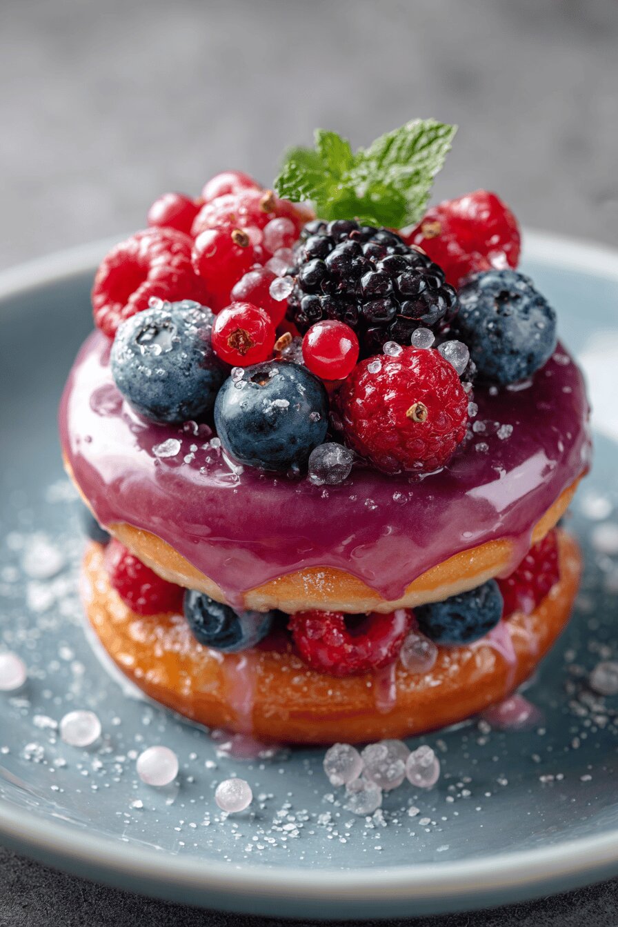- 💡 Fruit freshness matters. Use ripe but firm cherries and strawberries to avoid bleeding juice into cream. Scatter evenly but avoid overcrowding. Sugar pearls add snap but skip if berries are juicy to prevent soggy result. Refrigerate no longer than 24 hours; donuts soak moisture quickly, lose crunch, cream softens.
