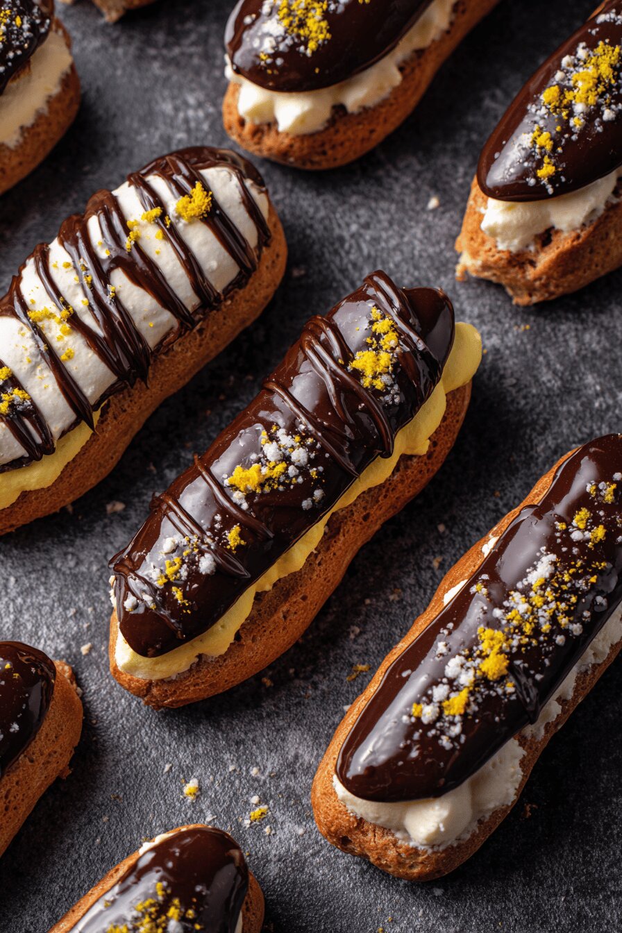 - 💡 Ganache topping—simple but effective. Melt dark chocolate. Mix in espresso powder, stir till smooth. Don’t dip éclairs! Spoon over top gently. Keep the crispness. Refrigerate until serving. Freshness is key; best if eaten within a day or two.