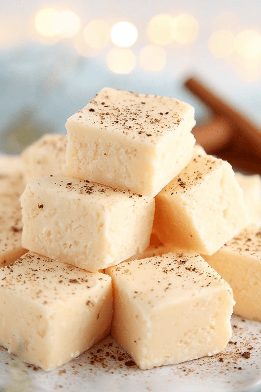 - Feedback loop from trial runs: lower sugar by 5% if you like it less sweet; cream can replace part eggnog for richer fudge; if marshmallow cream unavailable, powdered gelatin and sugar syrup can mimic texture (though more work). Tried almond extract once, weird in this combo, stick to spices.
