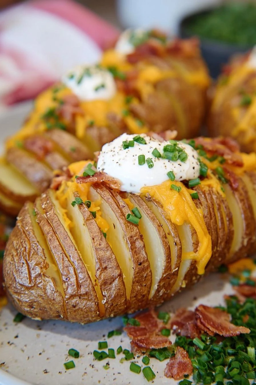 - 💡 If potatoes resist slicing, chill for 20 minutes first—firmer slices, cleaner cuts. A small flat cut on bottom prevents rolling and slipping during slicing. Bake times vary with potato size and thickness. Use visual cues—edges golden, slices visibly open, hearing crackling sound—better than timer alone. Cheese only last step; melts gooey inside cracks, not stringy. Return to warm oven briefly—1-2 minutes max.