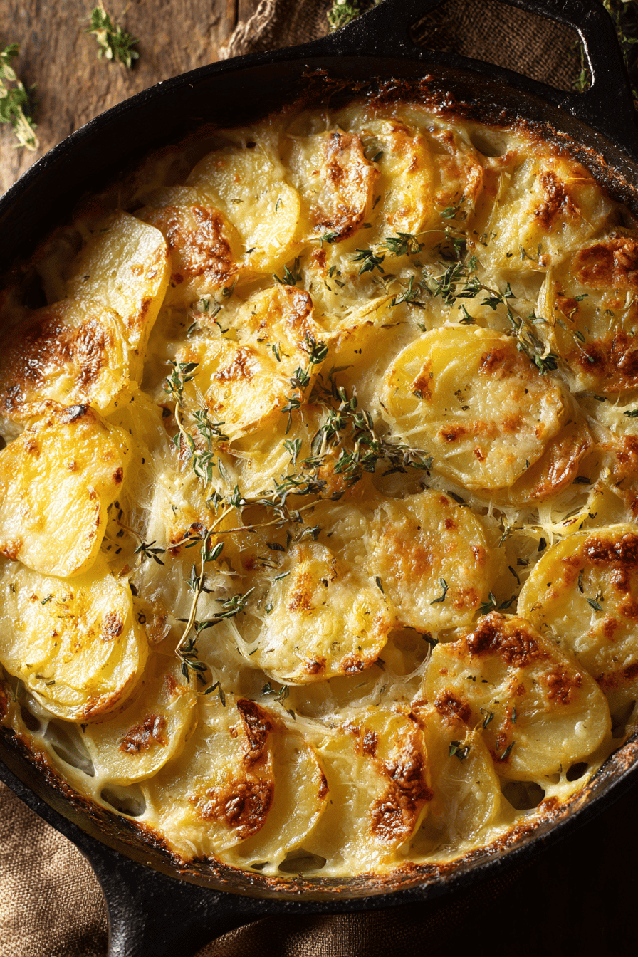 Potatoes layered thick, creamy, bursting with roasted garlic, the kind that fills the kitchen with that earthy sweet aroma. Not your usual Jarlsberg tossed in, swapped for Gruyere — shaper, nuttier bite. Yukon Golds here for their buttery texture, hold shape without turning gluey. Roasting garlic slow unlocks sweetness, not just raw bite — that mellow punch. Timing’s a bit of a dance. Overcook, potatoes mush, undercook raw snap ruins the whole dish. And cheese, don’t skimp — it’s the crust, the golden crown that seals in cream. Past runs? Too fast in oven, you get a burnt top, raw center — patience pays off. Thyme tossed in last-minute, my little tweak for that woodsy note. Layers done right, neat even slices, no clumps, or else you get uneven cook and a heavy mess. These lessons stick.