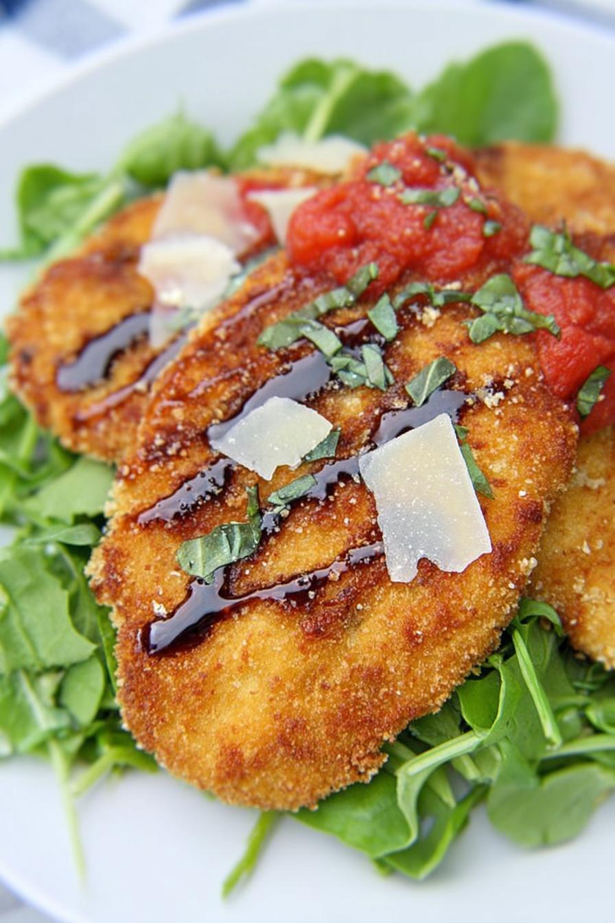 - Nutmeg subtle but elevates breading, no substitute needed though grated mace close. Cheese bring umami and melds breadcrumbs crisp better than plain. If breadcrumbs clump or fall off, skip resting or press crumbs harder. Avoid crowded frying; temperature drops greedy oil sucks heat make greasy chicken. Holding chicken in too hot oven risks drying — low and slow keeps texture crisp soft warm. Tomatoes release lot of water, pulling seeds+ pulp stops watery roast you want concentrated flavor. Garlic cloves roast soft mellow, can mash into tomatoes for spreadable addition. Oregano swap brings woodsy aroma over basil if pantry empty. Balsamic glaze store-bought or reduced from vinegar plus honey simmered thick. If you lack wire rack, drain on doubled paper towels and flip often to avoid steam sogginess. For gluten-free, swap flour bread crumbs with cornstarch and almond meal respectively; skip nutmeg if almond meal spices overlap oddly.