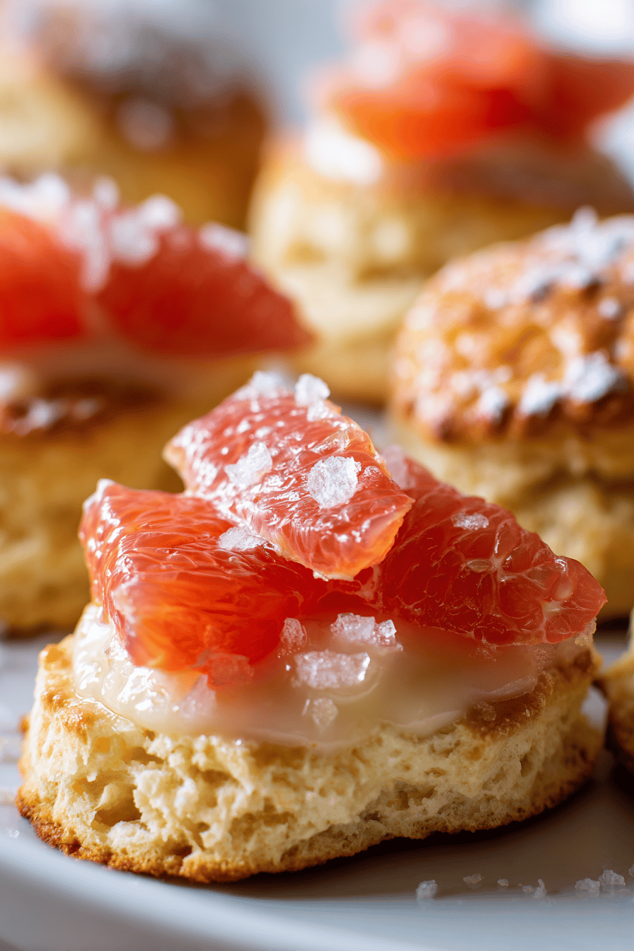 - 💡 Cut dough gently to wedges, like a disk 9 inches across. Overworking toughens dough. Shape carefully on floured surface. Space wedges apart on tray for rise. Brush tops with cream then press fresh grapefruit segments firmly but gently.