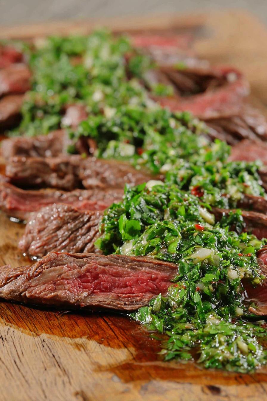 - Top each portion with room temperature chimichurri or salsa verde alternative; herbs pop, acid cuts through fat. Serve immediately.