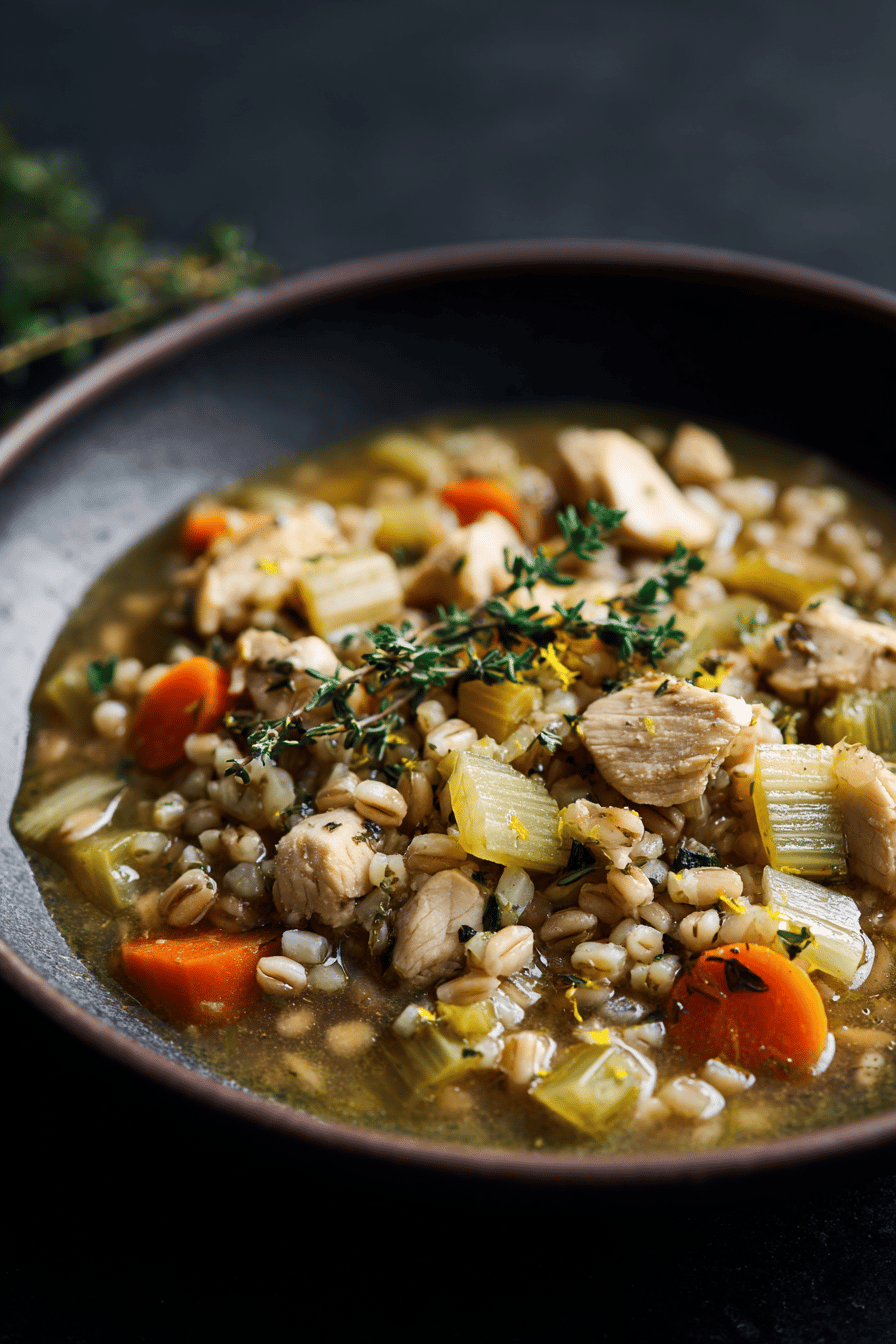 - Serve piping hot in wide shallow bowls. Garnish with fresh parsley or thyme leaves for color and herbaceous punch. The texture layering - chewy barley, tender veggies, rich chicken - is everything.