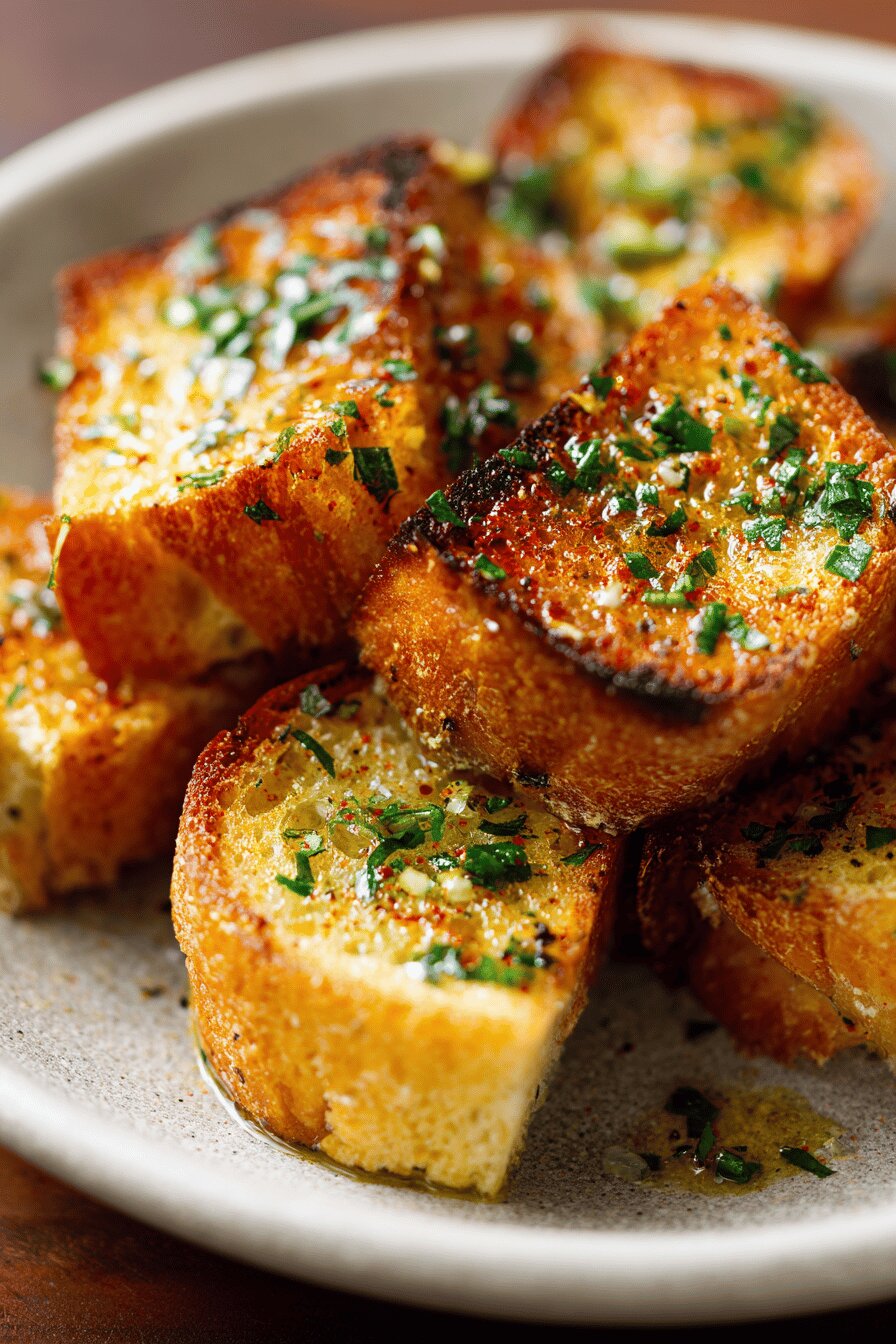 Butter whipped with lime, tarragon, smoked paprika, shallot. Big bread loaf sliced thick, crosshatched but base intact. Those buttery cuts melting under heat, pockets oozing fragrant goodness. Smoke and tang dance, herbs fresh, citrus sharp. Toasted crunch rims with warm soft cores. Quick to prep, lots of punch. Perfect with creamy pasta, cheesy bites, or just on their own, snack style. Rustic and simple. No fuss, just layers of herb butter sunk deep. Crispy meets gooey in every cubed bite. New herbs swapped in. Lime swapped for lemon. Slightly cooler oven, less time to toast right. Keep those edges crisp without dry crumb. Satisfying and bold. Slather it, melt it, eat quick. Butter is canvas, spice is spark. Bread turns buttery treasure. Try with eggs or roasted veggies too.