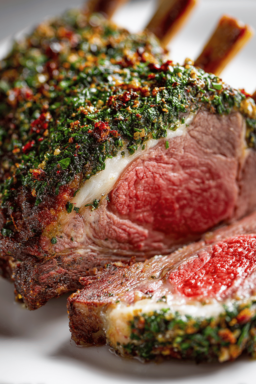 Wrap sliced meat loosely in foil or airtight container. Consume within 2 days for best flavor. Reheat gently in oven at low temp or covered skillet to avoid drying out. Leftover herb crust loses crunch fast, add fresh herbs on reheat. Bone can be kept refrigerated separately or added to stew stock later but not indefinitely in fridge.