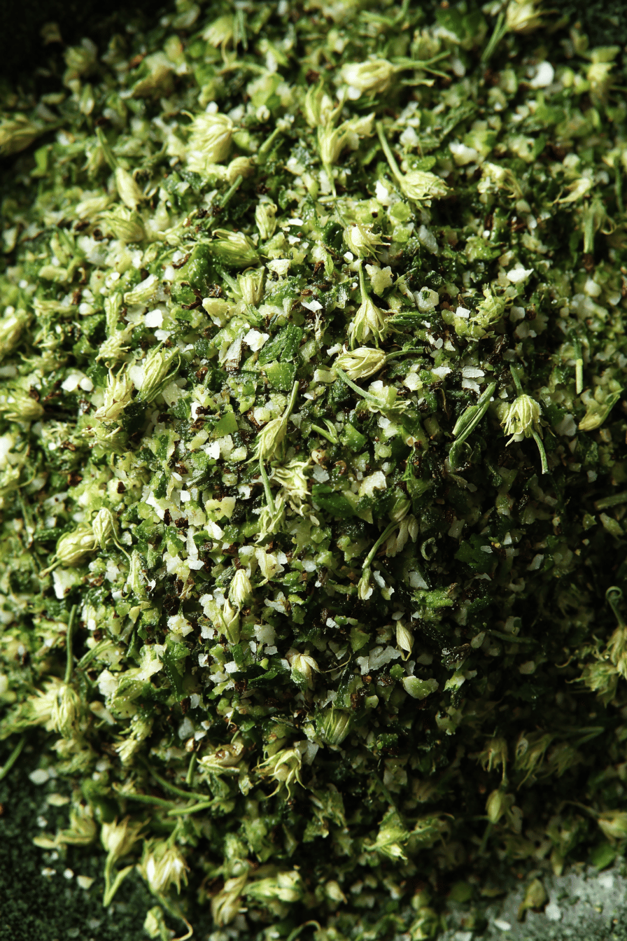 - 💡 Pulse herbs gently only 3 or 4 times. Avoid pureeing to keep texture. Rough chop first, don’t skimp on trimming tough stems or leaves. Keep chunks noticeable, that stops pasty mess. Scrape sides often. Folding with spatula beats mixing or shaking—less break down. Salt added at end, stirred not processed. Coarse bits add bite. Freshness key. Wilted herbs lose zip fast. No drying unless very light. Cool fridge slows decay but use quick. Jar airtight. Plastic no good, aroma leaks out. Keep flowers dominant for distinct oniony sweet flash.