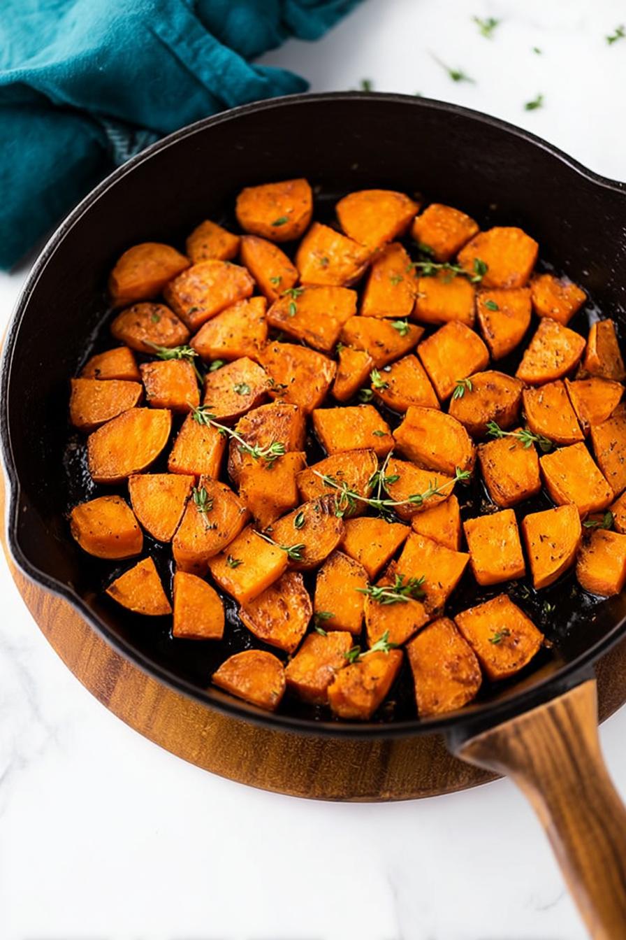 - 💡 Work in batches if skillet too small. Crowded pan? Steamed potatoes, soggy, no crust. Heavy pan important — cast iron preferred, but oven-safe stainless ok. Nonstick won’t get deep crust, expect paler edges. Toss spices with salt and pepper after sear, honey last so sugars don’t scorch too early. Timing guides only, rely on senses.