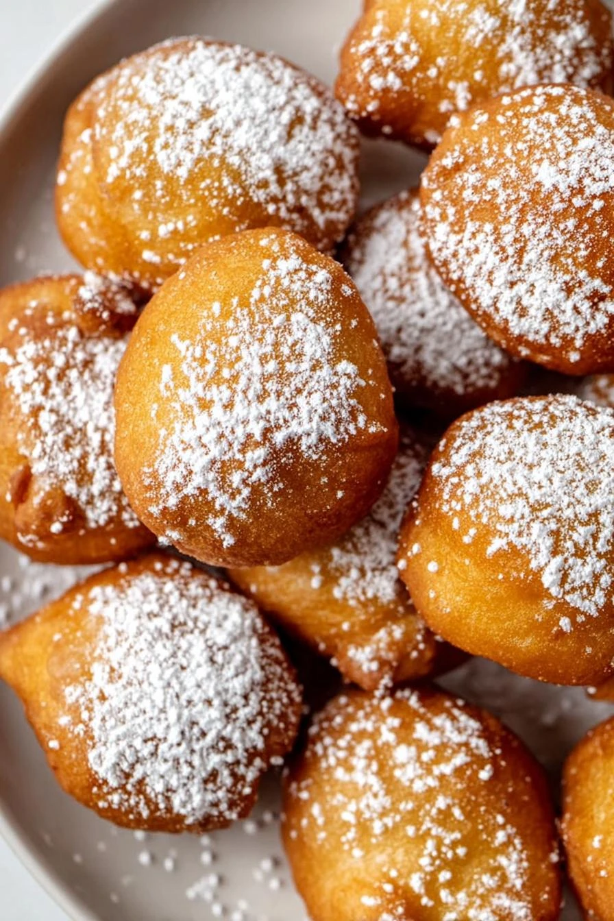 Dust with powdered sugar right before serving. Generously. The contrast between warm fried dough and sweet powder is the whole point. You can mix cinnamon in if you want something different. Works fine either way.